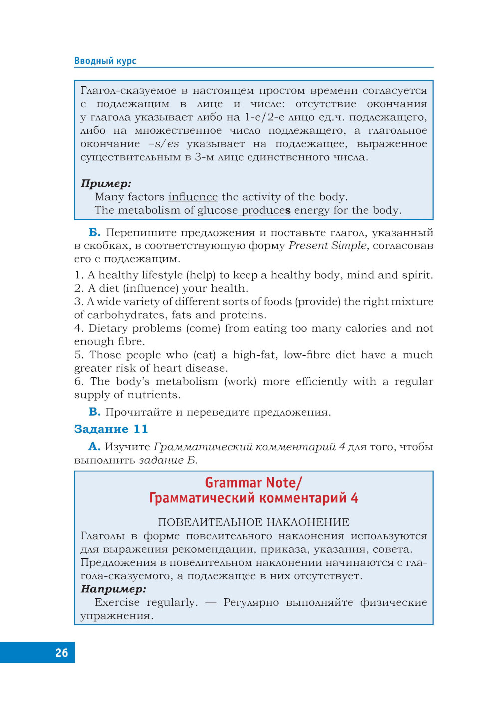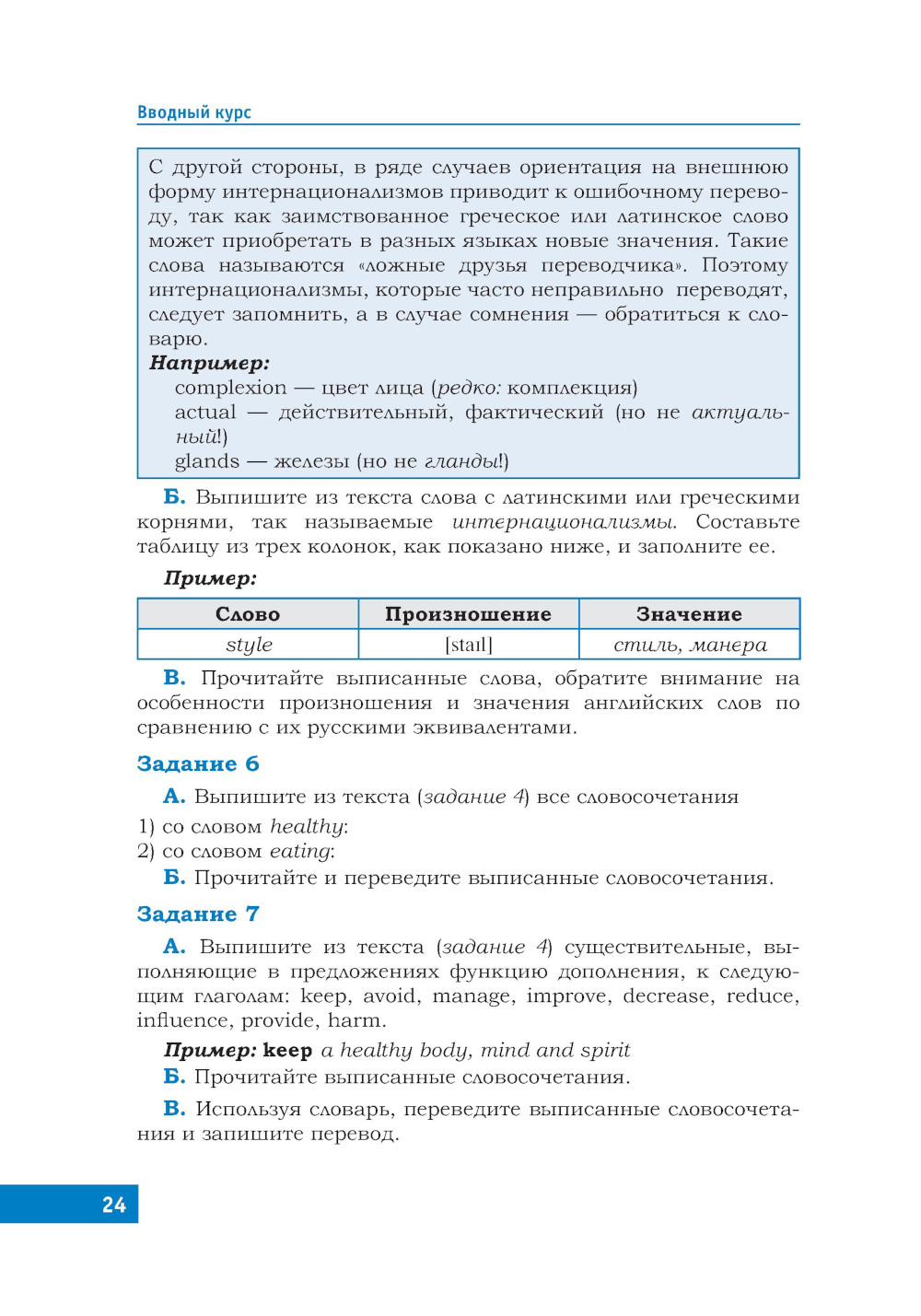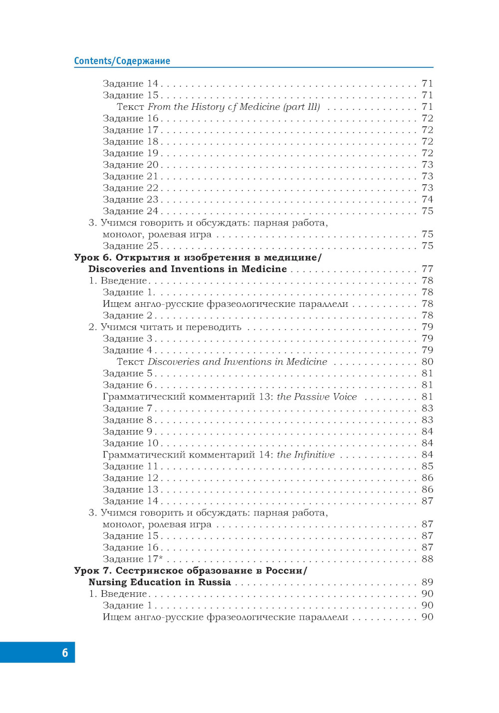 курс - имеет целью формирование и развитие умений и навыков работы с более сложными источниками информации - научными и специальными медицинскими текстами. Предложенная авторами система заданий формирует у обучающихся алгоритм анализа и чтения англоязычных текстов, обеспечивающий их понимание, извлечение необходимой информации и ее фиксацию различными способами (выполнение письменного перевода, составление аннотации, заполнение таблиц, содержащих определенные факты, и др.). Развитие умений устного общения также ориентировано на коммуникацию в условиях профессиональной деятельности. Авторская методическая концепция обучения иностранным языкам «для специальных целей» обеспечивает обучающихся знаниями, умениями и навыками, необходимыми для дальнейшего самостоятельного изучения и использования иностранного языка в условиях профессиональной деятельности.