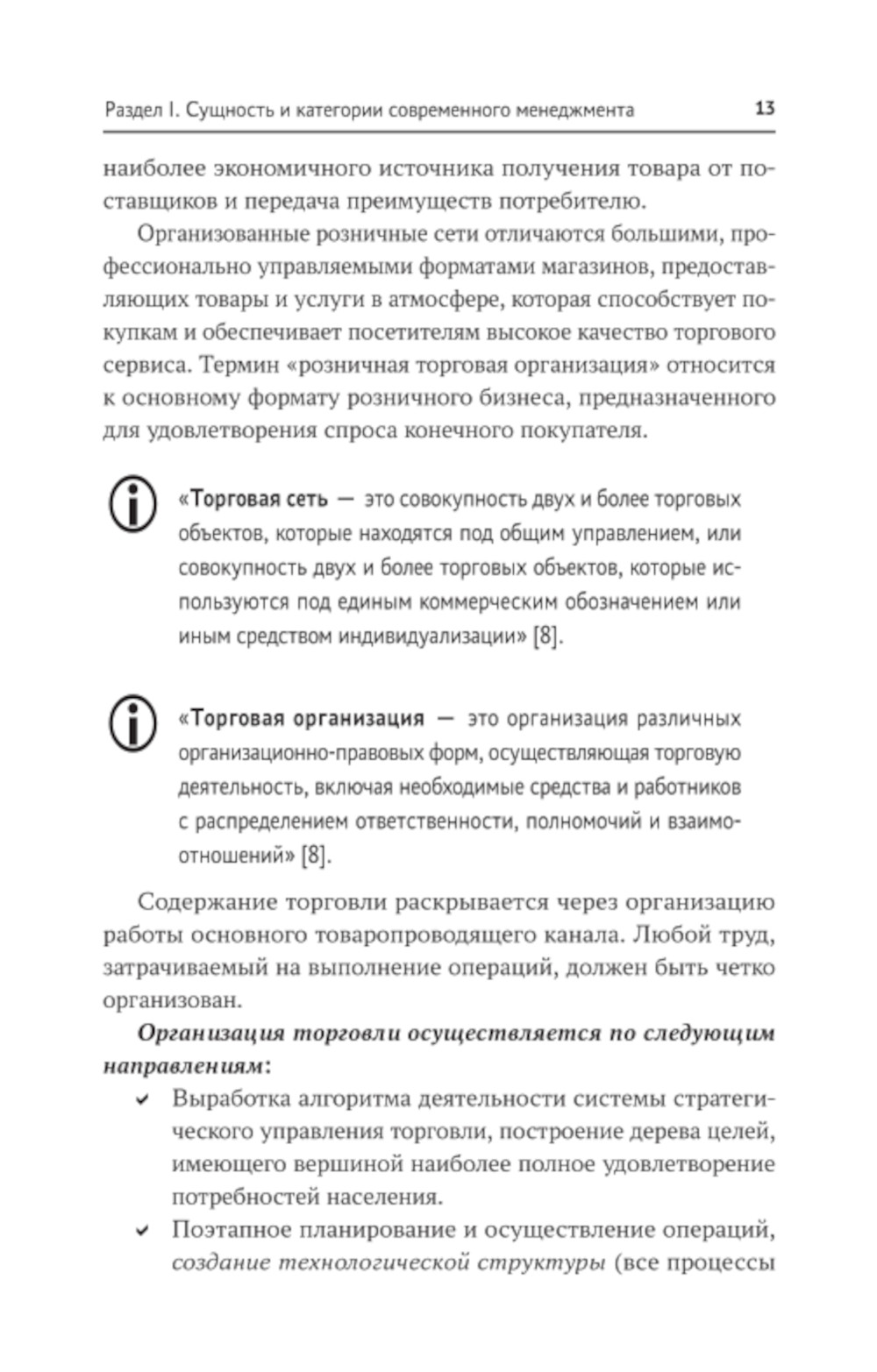 Учебное пособие подготовлено в соответствии с требованиями Федерального государственного образовательного стандарта среднего профессионального образования. В пособии отражен современный уровень знаний в области управления структурным подразделением, планирования и оценки эффективности деятельности торговой организации. Изложены темы: управление торговой организацией, система методов управления, организация работы трудового коллектива. Особое внимание уделено контролю выполнения работ исполнителями. Для студентов учреждений среднего профессионального образования, обучающихся по специальностям: 38.02.05 "Товароведение и экспертиза качества потребительских товаров", 38.02.04 "Коммерция (по отраслям)", 43.02.01 "Организация обслуживания в общественном питании"; по профессии 38.01.02 "Продавец, контролер-кассир". Учебное пособие имеет электронное приложение, в котором содержатся практические кейсы и вопросы к ним.| Издательство | Феникс |