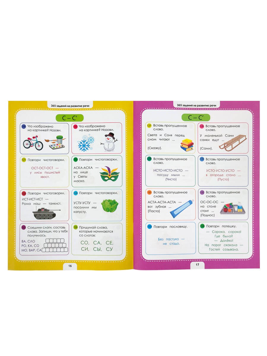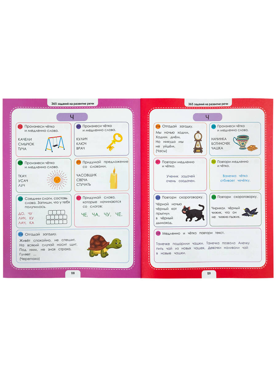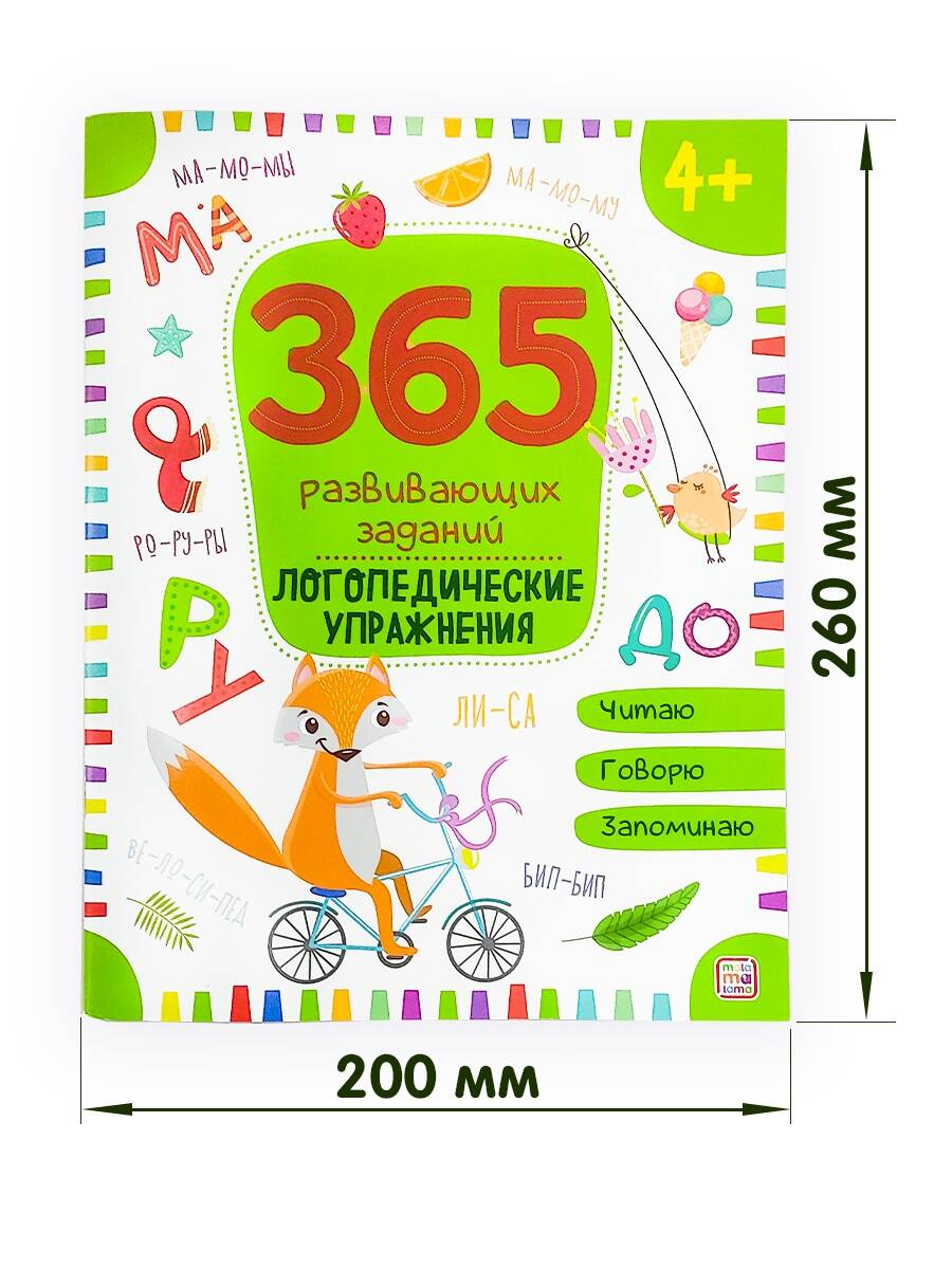 Рабочая тетрадь "Логопедические упражнения" из серии "365 развивающих заданий" - это комплексная подготовка к школе для самых любознательных малышей. Ровно 365 заданий, которые помогут ребёнку научиться выговаривать сложные звуки и слова, уверенно и спокойно выражать свои мысли. Мы специально работали над структурой и оформлением тетради: задания чередуются по сложности и смыслу, страницы оформлены в ярких привлекательных цветах. Мы сделали всё, чтобы ваш ребёнок с удовольствием познавал мир, готовился к школе и развивался. Он будет с радостью возвращаться к занятиям снова!