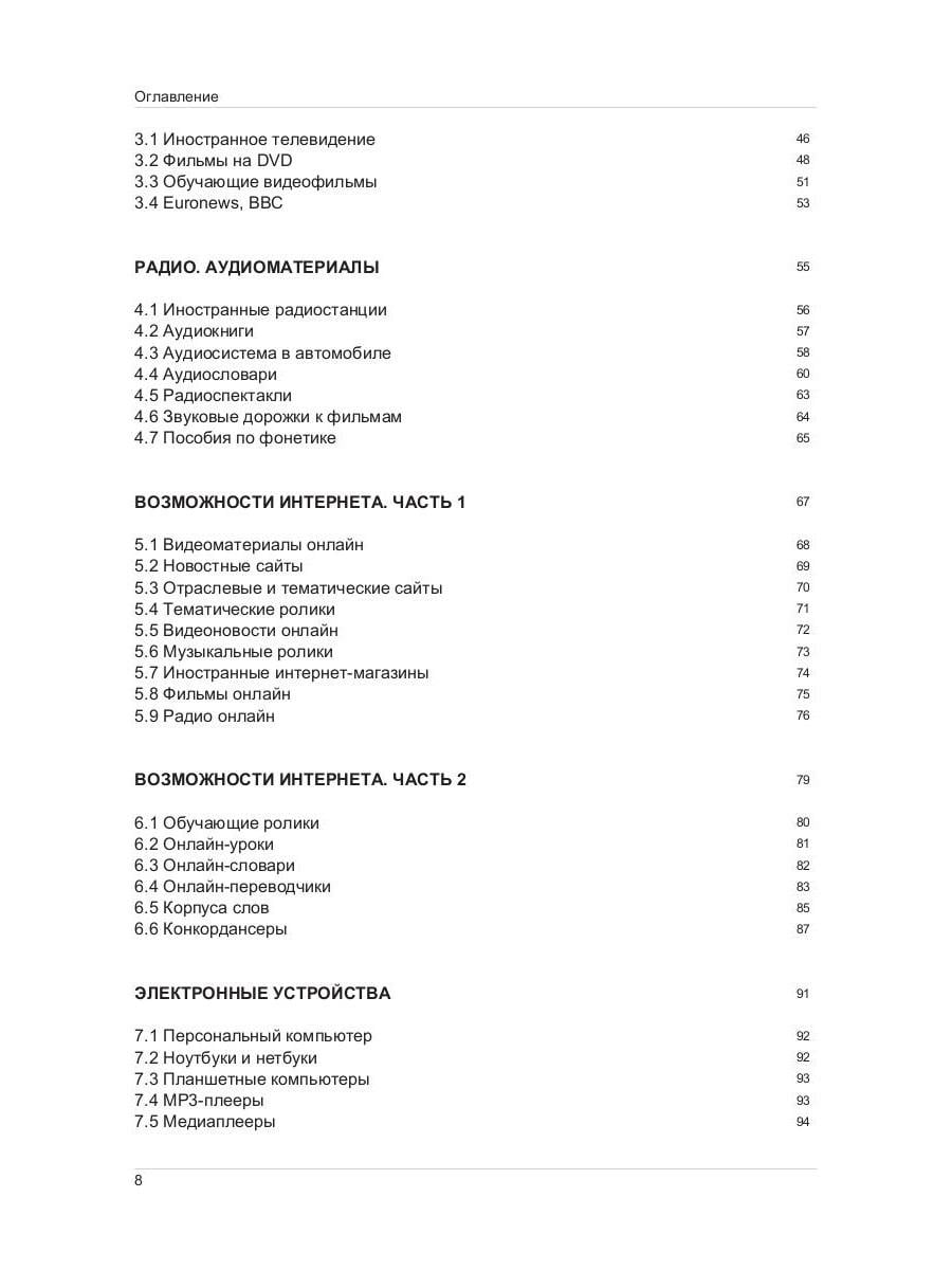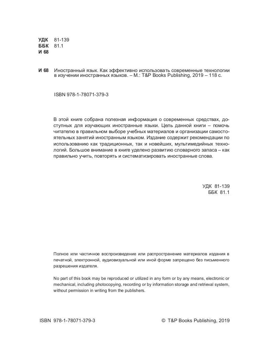 В этой книге собрана полезная информация о современных средствах, доступных для изучающих иностранные языки. Цель данной книги - помочь читателю в правильном выборе учебных материалов и организации самостоятельных занятий иностранным языком. Издание содержит рекомендации по использованию как традиционных, так и новейших, мультимедийных технологий. Большое внимание в книге уделено развитию словарного запаса - как правильно учить, повторять и систематизировать иностранные слова.