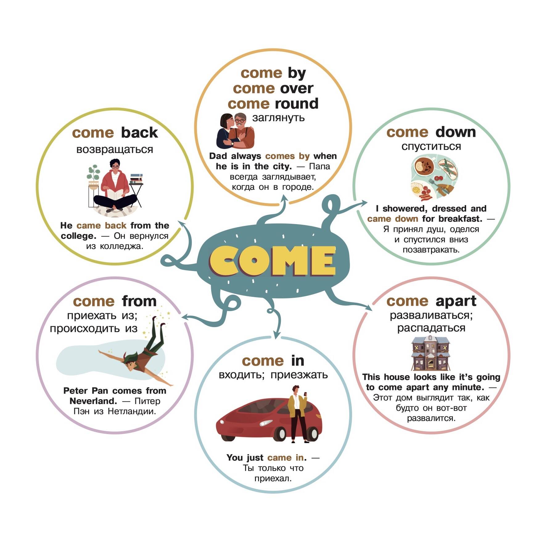 Фразовые глаголы никак не хотят come back to memory? Этот плакат-самоучитель поможет запомнить их! Он содержит все главные фразовые глаголы, часто применяемые в речи. Яркие картинки скрасят процесс заучивания, а наглядные примеры сделают его ощутимо проще. Используйте его как календарь, повесив на стену, и изучайте новые глаголы каждые несколько дней!| Издательство | АСТ |