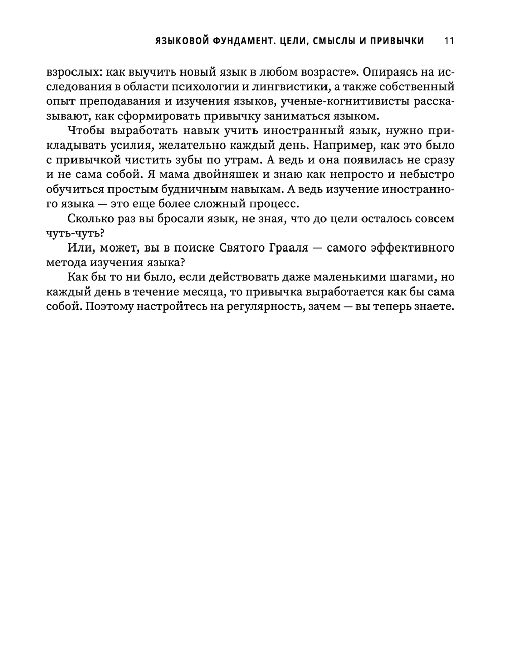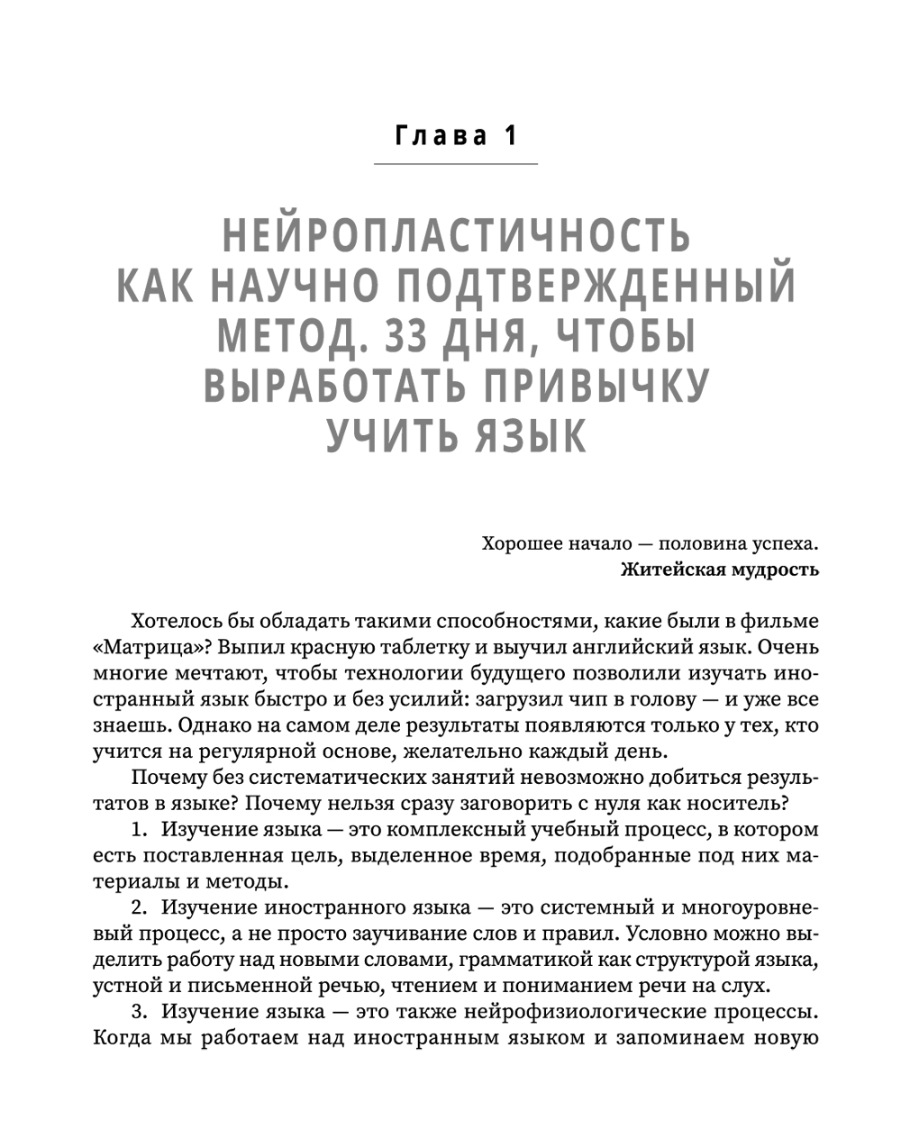 Эта книга - самоучитель нового поколения, концентрат мирового опыта полиглотов в практической подаче от полиглота и языкового коуча. Она структурирована на основе принципов нейрохакинга - научного подхода к формированию устойчивых привычек. Это своего рода дегустационное языковое меню на 33 дня. Каждый день вы открываете следующую главу, чтобы не только узнать о новом методе и получить порцию языкового материала, но и сразу же опробовать его на себе, «продегустировать». Всего 15-20 минут каждый день, и уже за 33 дня вы не только подберете любимые методы и составите личную эффективную систему для изучения английского, но и получите удовольствие от языковой «дегустации».| Издательство | Феникс |