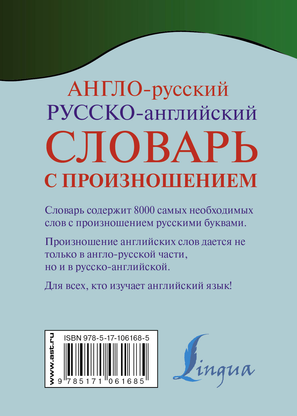 Серия «Карманная библиотека словарей: лучшее» включает словари и пособия по русскому и иностранным языкам. Удобный формат и содержательность изданий позволяют необходимую информацию всегда иметь под рукой. «Англо-русский русско-английский словарь с произношением» отличается от других подобных словарей тем, что произношение английских слов дано русскими бувами, причем не только в англо-русской части, но и в русско-английской. Словарь предназначен для всех, кто стремится овладеть английским языком.| Издательство | Издательство "АСТ" |