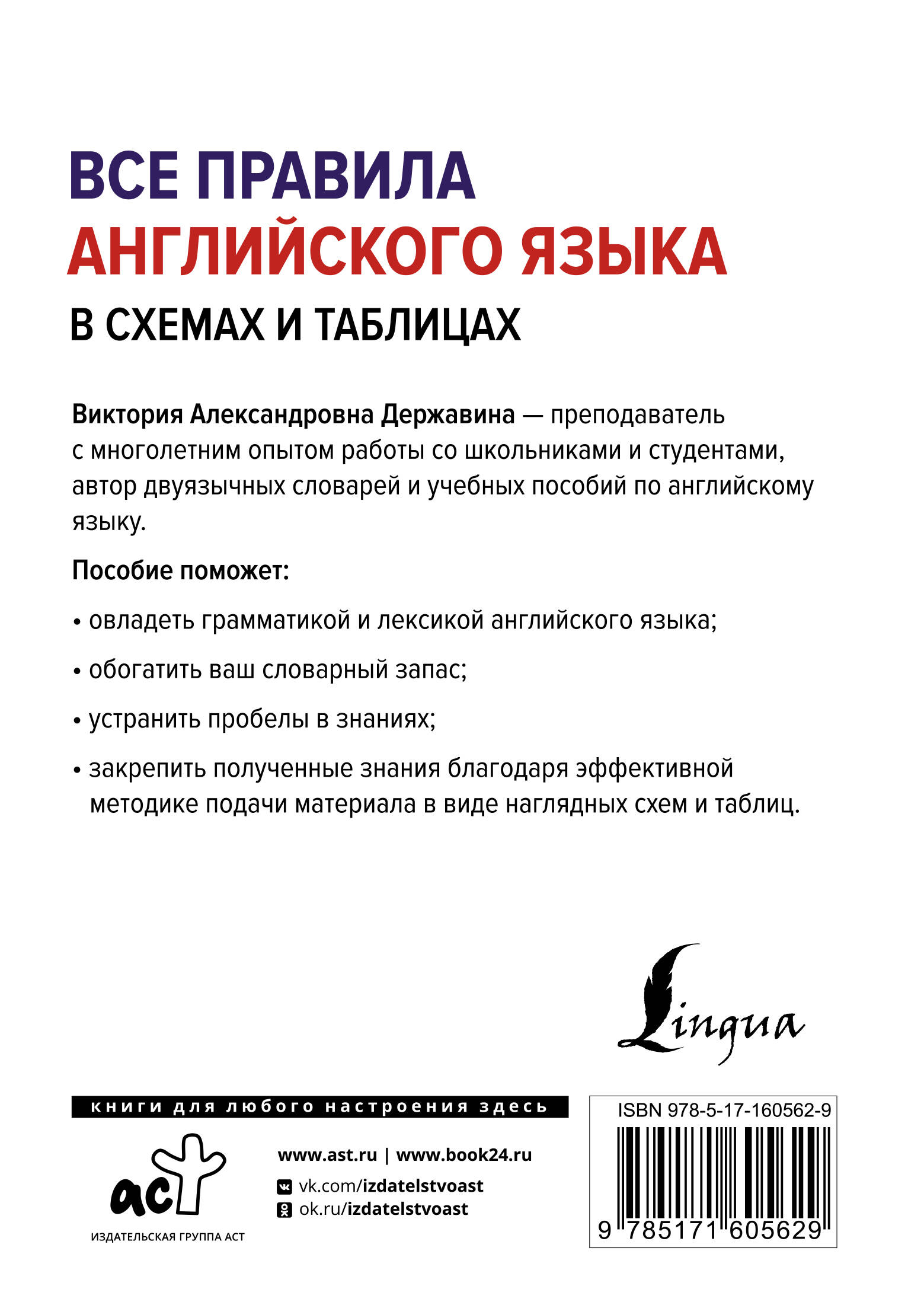 Данный справочник содержит базовый курс английской грамматики. Все правила проиллюстрированы примерами с переводом на русский язык. Простые таблицы и схемы помогут в кратчайшие сроки освоить или повторить любую грамматическую тему. Грамматика дополнена полезными приложениями, которые пригодятся при изучении английского языка. Справочник поможет восстановить свои знания, выполнять упражнения и домашние задания или готовиться к экзаменам.| Издательство | Издательство "АСТ" |