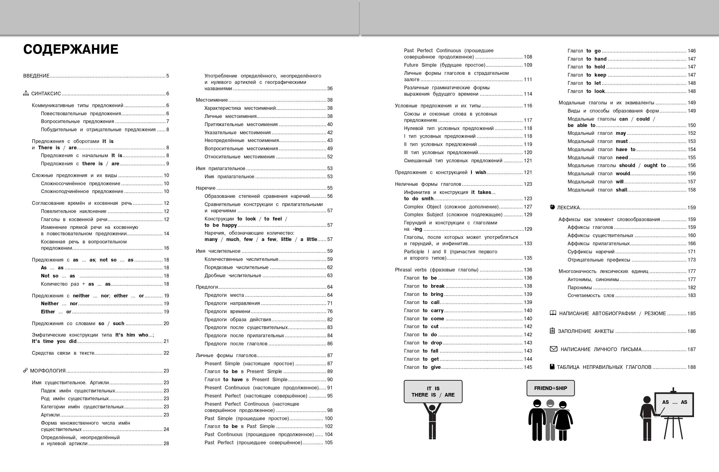 Пособие поможет быстро и эффективно подготовится к урокам, различным формам текущего и промежуточного контроля, а также к экзаменам. В книге в наглядной и доступной форме приводятся основные сведения за весь школьный курс английского языка. В громоздких учебниках порой бывает сложно найти ответ на какой-то конкретный вопрос. А в данном издании представлена действительно нужная и систематизированная информация, материал изложен последовательно, от простого к сложному, дополняется иллюстрациями, примерами, наглядными схемами и таблицами. В этой книге для школьников можно найти основные разделы предмета: «Синтаксис», «Морфология», «Лексика». В конце пособия расположена информация, как на английском языке грамотно написать резюме, письмо, заполнить анкету, а также представлена таблица неправильных глаголов. Справочник обеспечит знание и понимание всех, даже самых сложных тем школьной программы. В нем каждый ученик 5-11 классов найдет много полезного для своего образования, обретет уверенность на уроках, контрольных, ОГЭ и ЕГЭ.| Издательство | ООО "Издательство "Эксмо" |