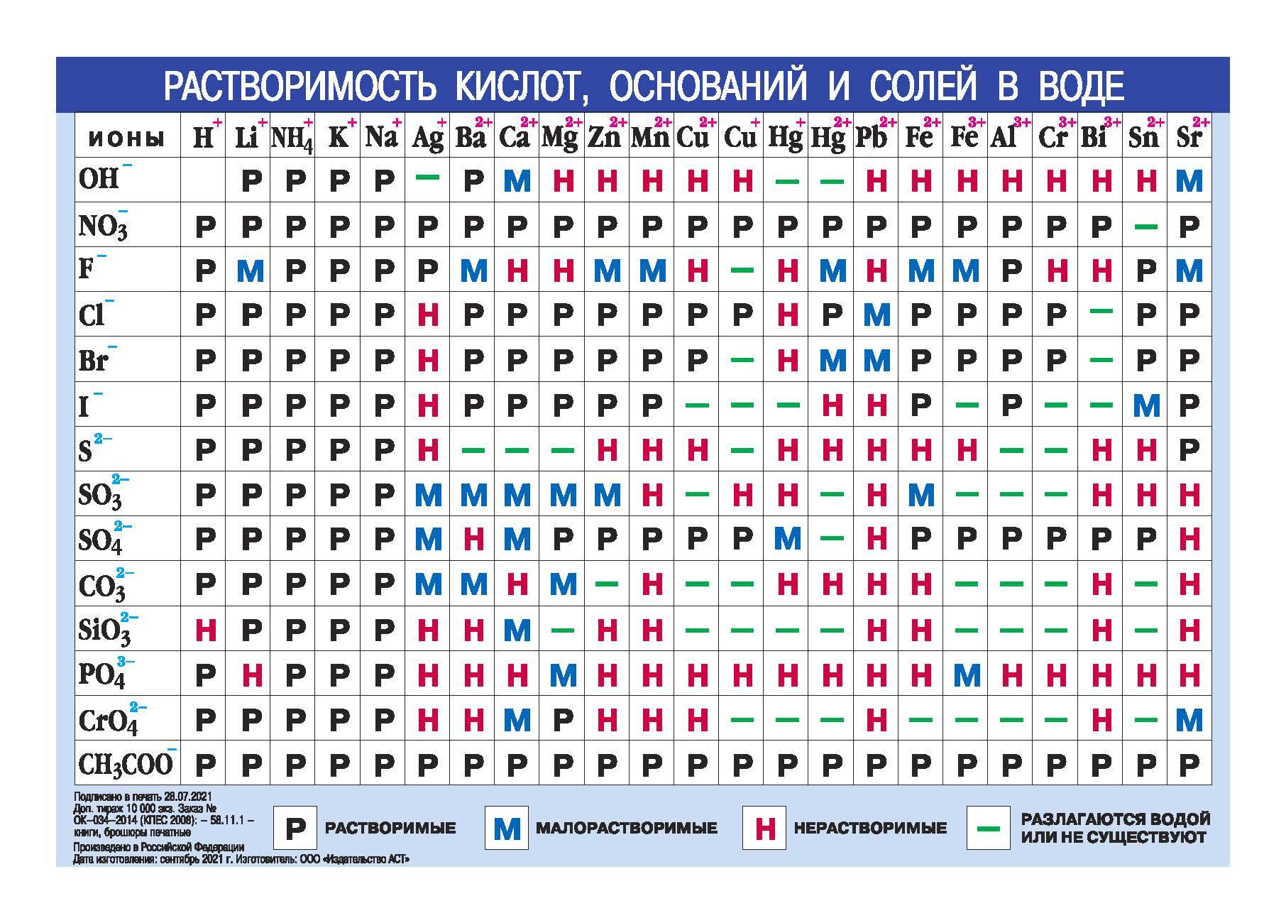 Периодическая система химических элементов Менделеева.Растворимость кислот, оснований и солей в воде.