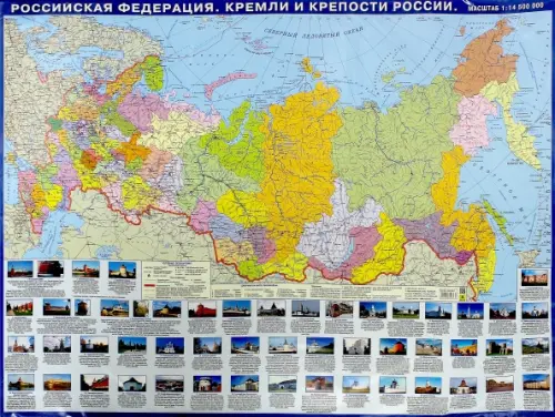 Российская Федерация. Кремли и крепости России. Тематическая настольная карта. Карта имеет двустороннюю ламинацию. Масштаб: 1:14 500 000.