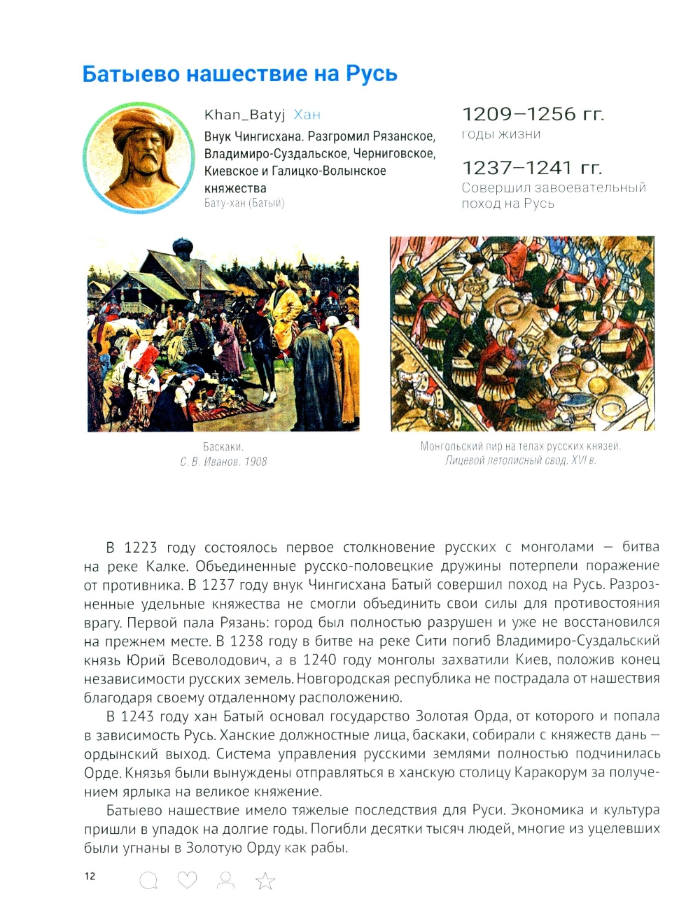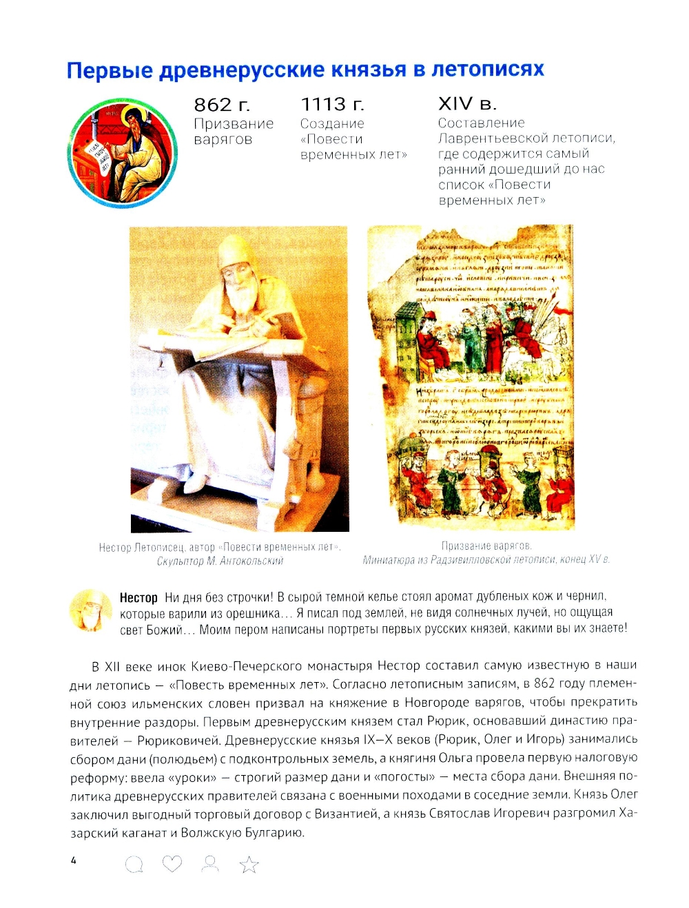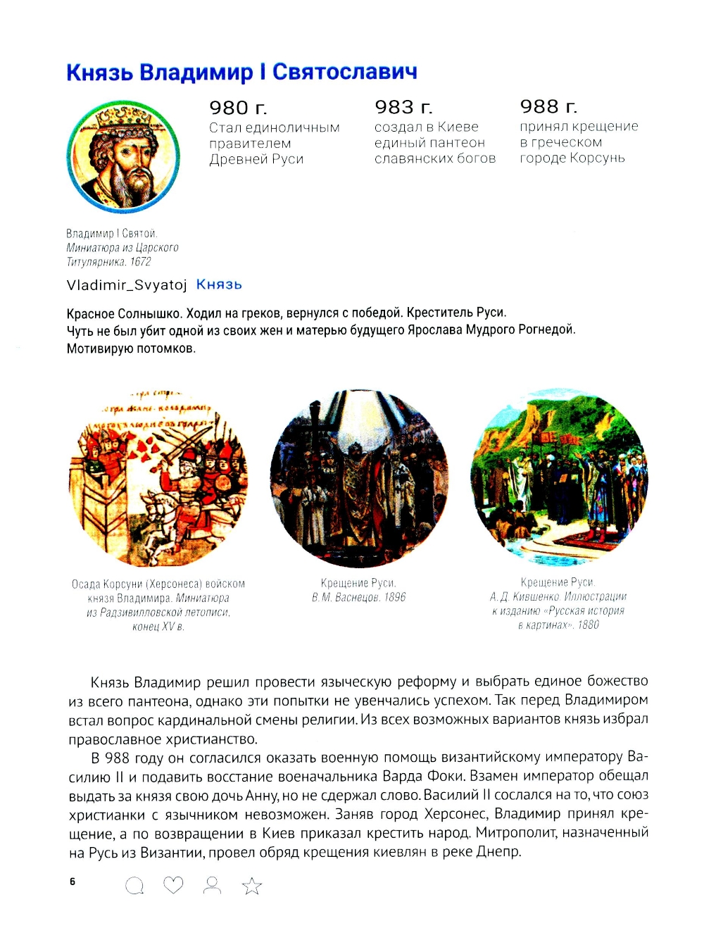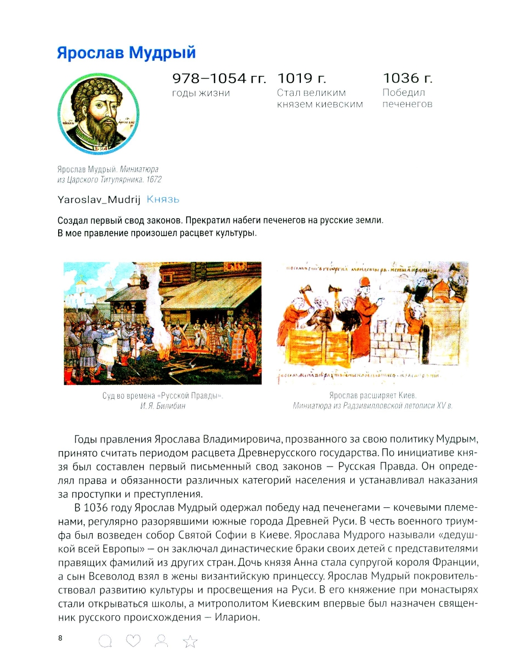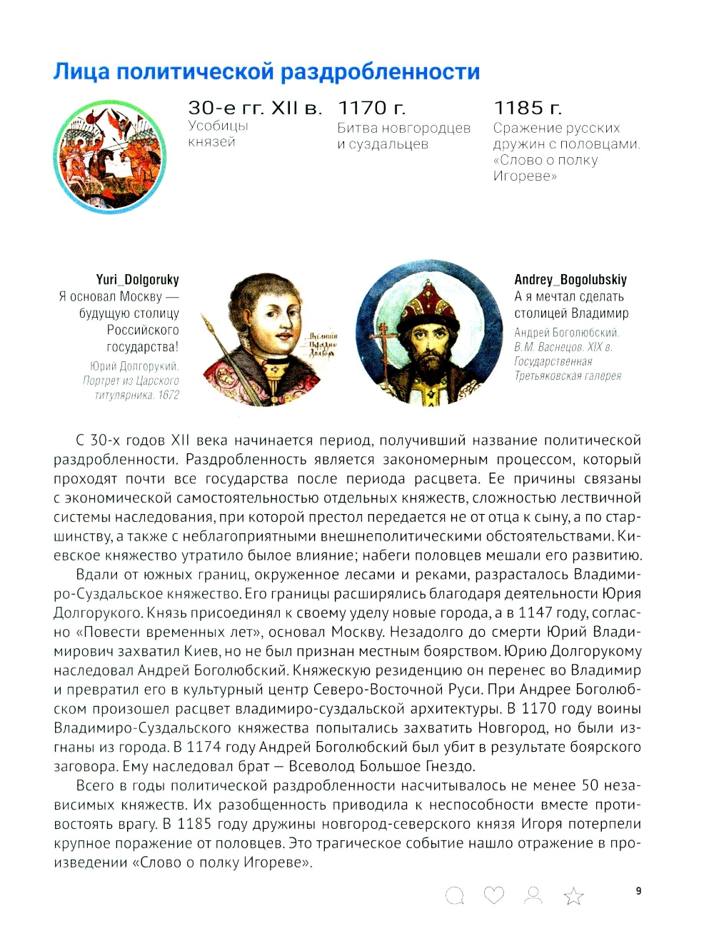 Учебное пособие подготовлено в виде страниц из социальной сети, отражающих образ эпохи и роль личности в истории. В соответствии с учебным курсом «Истории России» оно охватывает темы от Древней Руси до начала третьего десятилетия XXI века. Иллюстрированное издание ориентировано прежде всего на школьников и студентов, однако будет интересно и широкому кругу читателей, желающих изучить основные этапы исторического пути нашей страны.| Издательство | Блок-Принт |