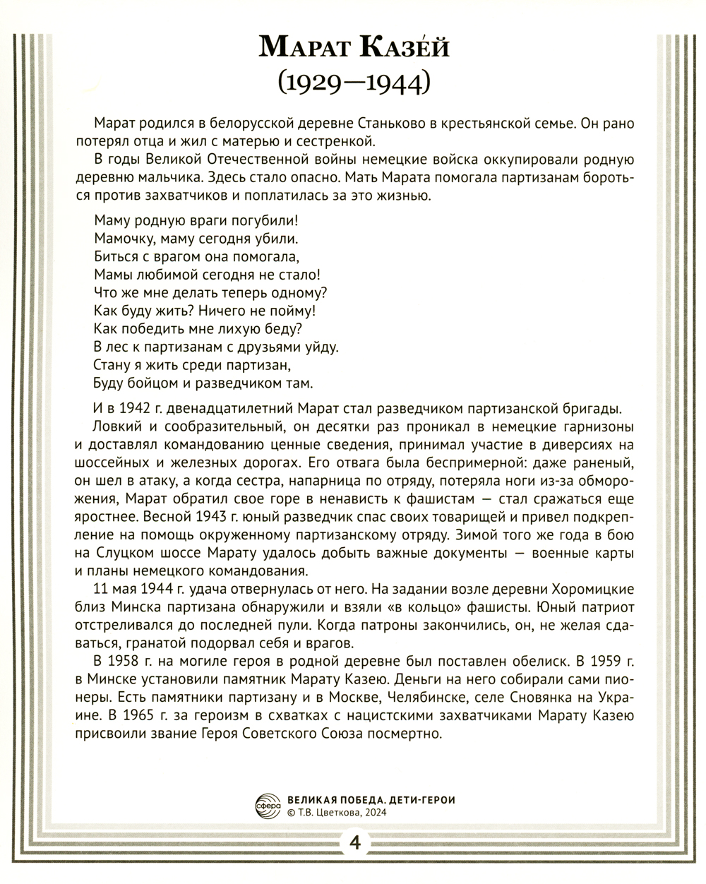 Аннотация: Великая Победа. Дети-герои. Демонстрационные картинки, беседы, стихотворения, 12 картинок