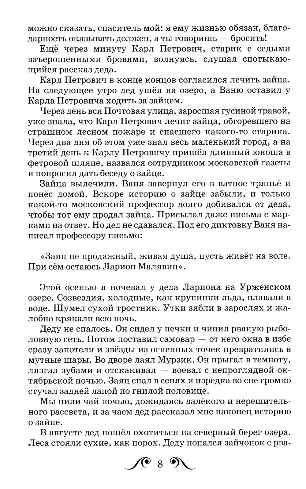 Константин Георгиевич Паустовский (1892-1968) родился в Москве. Его отец, чиновник, железнодорожный статистик, имел неуживчивый характер и часто менял места работы. После нескольких переездов семья обосновалась в Киеве, и Костя поступил в Киевскую классическую гимназию. Но через шесть лет отец оставил семью, и мальчик, чтобы заработать на жизнь и учёбу, вынужден был заниматься репетиторством. В 1912 году Паустовский написал и опубликовал свой первый рассказ «На воде». Окончив гимназию, он поступил в Киевский университет, а затем перевёлся в Московский университет, но началась Первая мировая война, и Константин прервал учёбу. Он работал трамвайным вагоновожатым, затем на санитарном поезде. На фронте погибли два старших брата Паустовского, и после войны он вернулся к матери в Москву. Революцию Константин встретил с радостью, но, столкнувшись с насилием, разрухой, упадком прежней культуры, разочаровался. Он работал репортёром, учителем, корректором, много ездил по стране. В 1925 году вышла его первая книга «Морские наброски», а в 1929 - роман «Блистающие облака». Паустовский становится профессиональным писателем, а после выхода повести «Кара-Бугаз» (о борьбе за оживление бесплодной, иссушенной земли ) к нему приходит известность. Он побывал во многих уголках России, но особенно ему полюбился Мещёрский край, о котором он написал множество повестей и рассказов. В годы Великой Отечественной войны Паустовский работал военным корреспондентом. В этот тяжёлый для всех период он написал такие лирические рассказы, как «Снег» (1943) и «Дождливый рассвет» (1945). В 50-60-е годы к Паустовскому пришла мировая известность. Он получил возможность путешествовать по Европе и написал множество рассказов и очерков ( «Итальянские встречи», «Мимолётный Париж», «Огни Ла-Манша» и др.). Но главными его произведениями в этот период стали автобиографическая «Повесть о жизни» и повесть «Золотаяроза» - о «прекрасной сущности писательского труда». Умер Паустовский в Москве, но похоронить себя завещал на городском кладбище Тарусы, на высоком холме, окружённом деревьями с просветом на реку Таруску.| Издательство | Искателькнига |