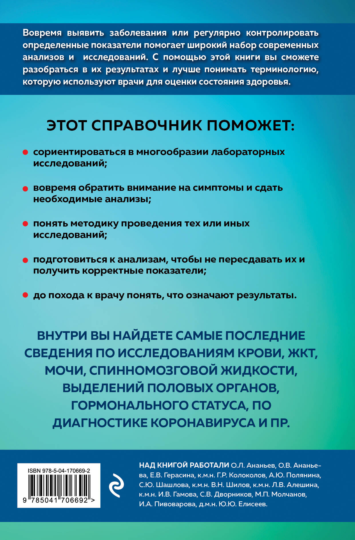 Самый современный и исчерпывающий справочник, содержащий всю необходимую информацию о лабораторных исследованиях и анализах. Внутри вы найдете описания часто используемых и редких методик и рекомендации по подготовке к ним, а также расшифровку результатов анализов и советы по исследованиям при тех или иных симптомах. В это обновленное издание включена информация по диагностике коронавируса. Справочник предназначен для широкого круга читателей.| Издательство | ООО "Издательство "Эксмо" |