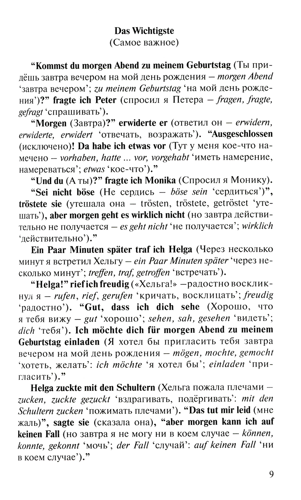 Предлагаемая книга для чтения на немецком языке является продолжением сборника «Легко! Читаем по-немецки». Она также составлена из небольших по объёму оригинальных текстов, которые сопровождаются переводом и лексико-грамматическим комментарием, что даёт возможность не обращаться постоянно к словарю. Повторное предъявление того же текста без комментария способствует закреплению приобретаемых навыков и позволяет учащемуся оценить степень усвоения языкового материала. Составляющие сборник оригинальные немецкие тексты содержат современную разговорную лексику, в них много диалогов, общеупотребительных словосочетаний, распространённых устойчивых оборотов. В качестве учебного пособия предлагаемая книга может быть использована в сочетании с любой учебной программой как при системном изучении языка, так и для активизации коммуникативных навыков. Книга адресована всем, кому интересен немецкий язык.| Издательство | Антология |