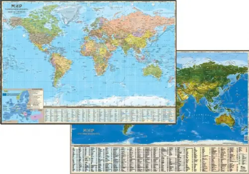 Двусторонняя настольная карта. Политический мир. Спутниковая карта мира