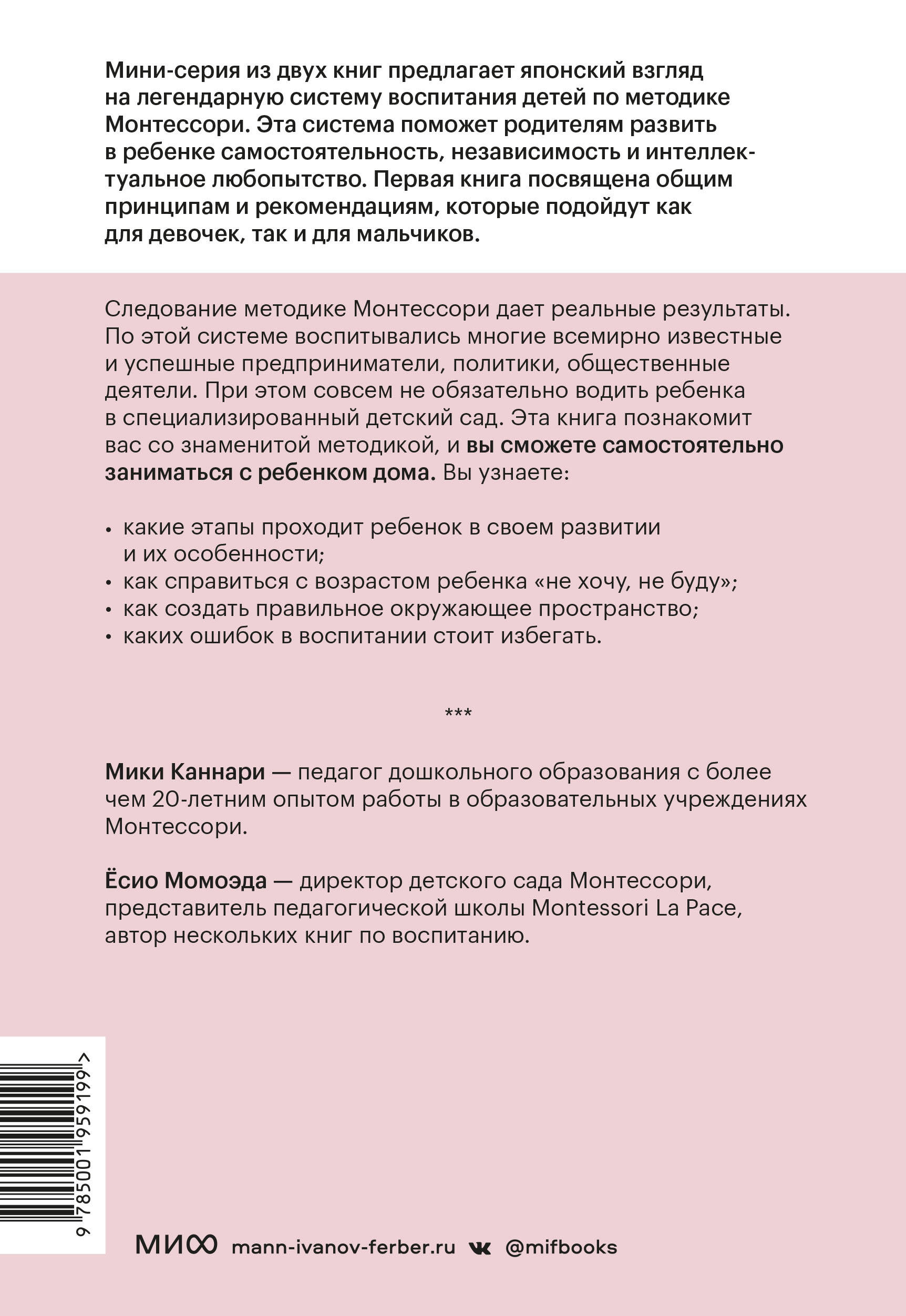 Японский взгляд на легендарную и грамотную систему воспитания, которая поможет родителям вырастить своих детей успешными и счастливыми. Следование методике Монтессори дает реальные результаты. По этой системе воспитывались многие всемирно известные и успешные предприниматели, политики, общественные деятели: британские принцы Уильям и Гарри, основатель Amazon Джефф Безос, сооснователи Google Сергей Брин и Ларри Пейдж, социолог Питер Друкер и многие другие. При этом совсем не обязательно водить ребенка в специализированный детский сад. Эта книга познакомит вас со знаменитой методикой, и вы сможете самостоятельно заниматься с ребенком дома. Вы узнаете: какие этапы проходит ребенок в своем развитии и их особенности; как справиться с возрастом ребенка "не хочу, не буду"; как создать правильное окружающее пространство; каких ошибок в воспитании стоит избегать. О серии: Успешная в Японии мини-серия из двух книг предлагает японский взгляд на легендарную систему воспитания детей по методике Монтессори. Эта система поможет родителям развить в ребенке самостоятельность, независимость и интеллектуальное любопытство. Первая книга посвящена общим принципам и рекомендациям, которые подойдут как для девочек, так и для мальчиков, а вторая посвящена воспитанию мальчиков. Для кого эта книга: Для поклонников методики Монтессори. Для мам и пап, которые хотят реализовать все таланты и способности своих детей. Для родителей, которые стремятся вырастить своих детей успешными и счастливыми.| Издательство | МАНН, ИВАНОВ И ФЕРБЕР ООО |
