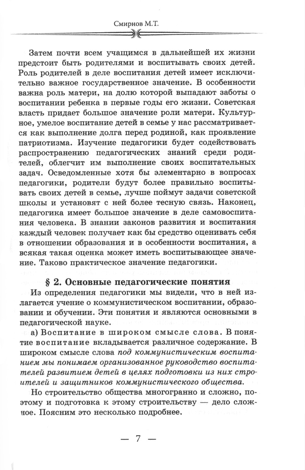 Каждый из нас знает, что педагогика - это наука о воспитании. Но не каждый сможет сразу ответить на вопросы о том, какие цели и задачи ставит перед учителями и родителями эта наука, какие методы и приёмы она предлагает использовать, к какому результату стремится. Книга М. Т. Смирнова, советского учёного и педагога, приглашает нас окунуться в мир педагогики и делает слож-1гую науку близкой и понятной каждому человеку, который стремится воспитать ребёнка гармоничной личностью.