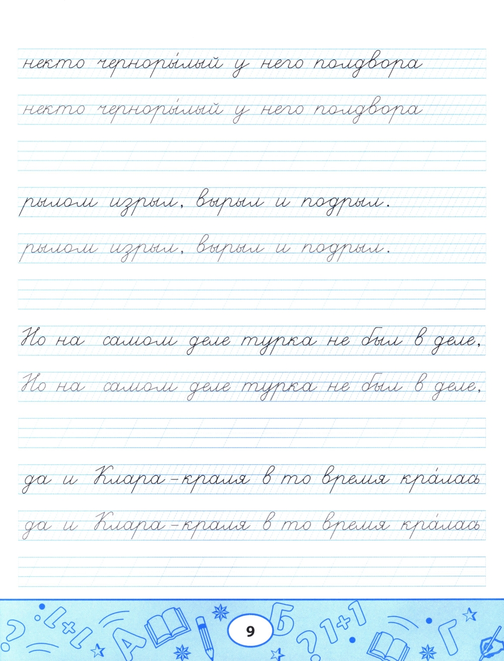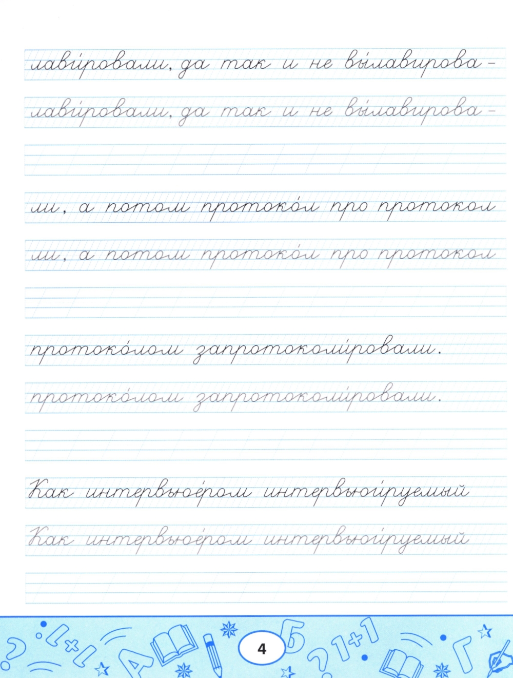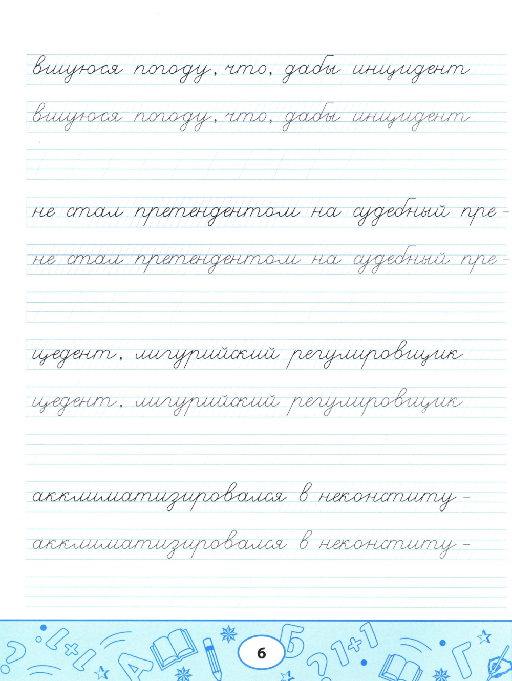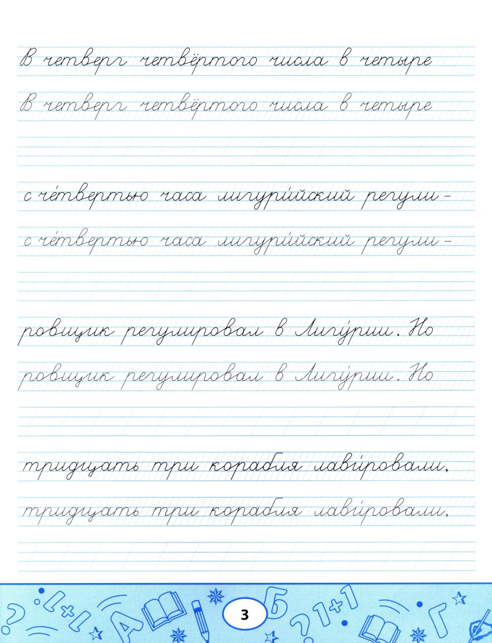 Пропись-скороговорка - комплексный тренажёр, направленный не только на формирование устойчивого почерка, но и на отработку чёткости дикции, развитие памяти, орфографической зоркости и навыков грамотного письма. Пишите аккуратно, проговаривайте вслух скороговорку, рассказывайте её наизусть с выражением: так вы будете не только вырабатывать каллиграфический почерк, но и совершенствовать произношение и активизировать память. Пропись-скороговорка полезна не только школьникам, но и взрослым.