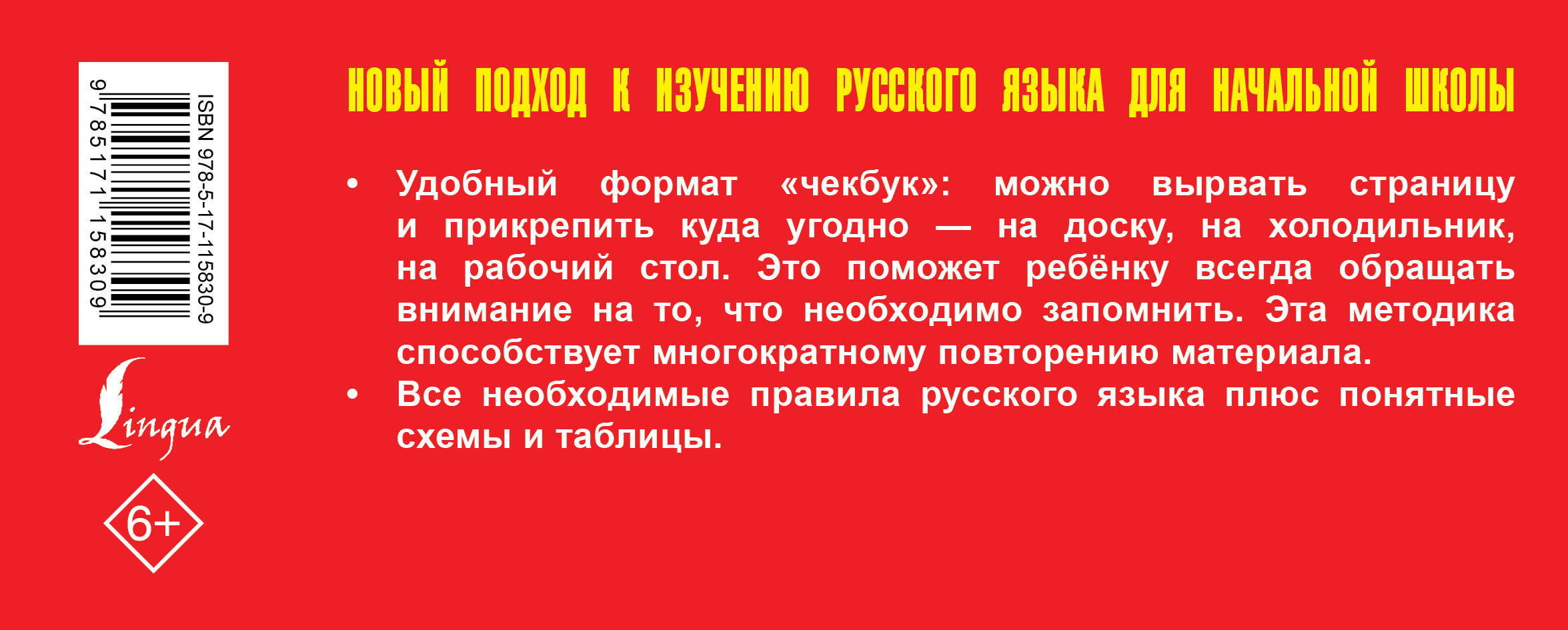 Новый способ выучить все правила русского языка. Удобный формат "чекбук": можно вырвать страницу и прикрепить куда угодно - материал всегда на виду! Материал представлен в наглядных схемах и таблицах.| Издательство | Издательство "АСТ" |