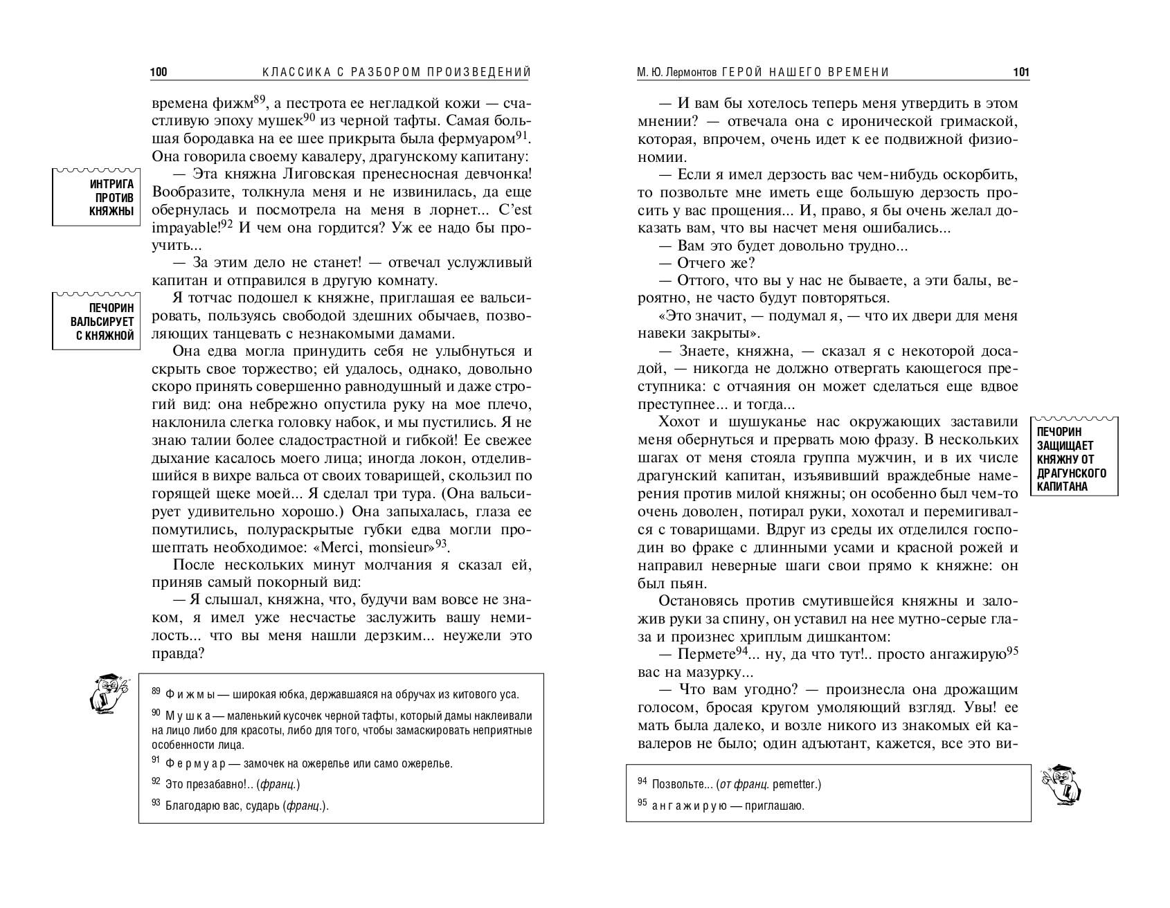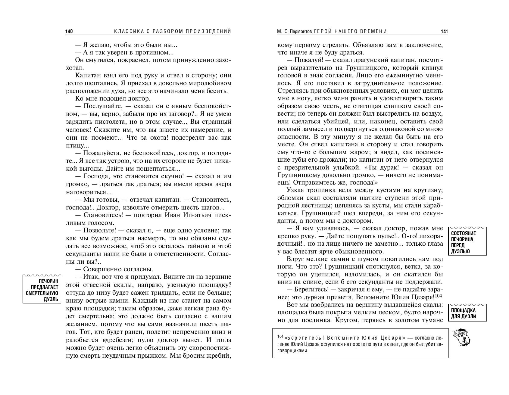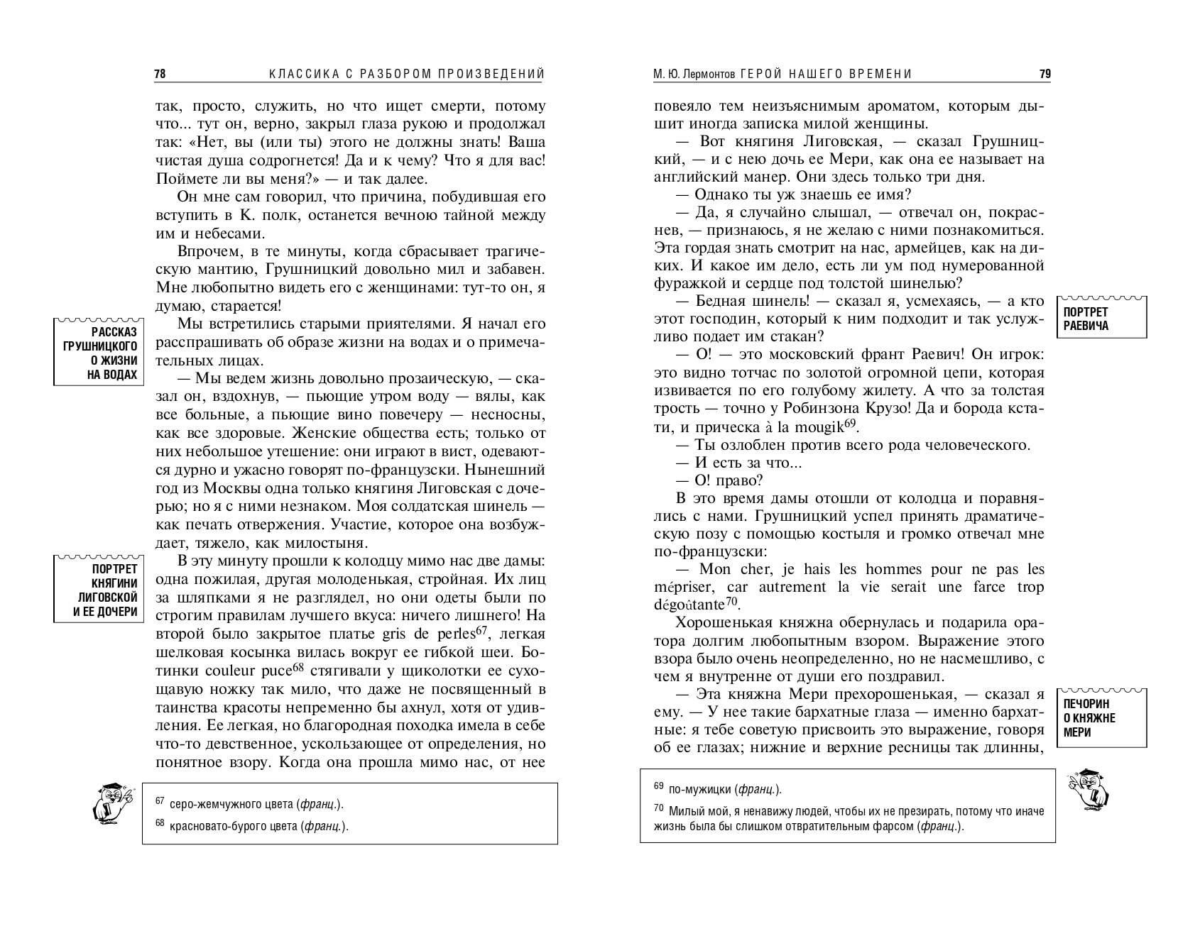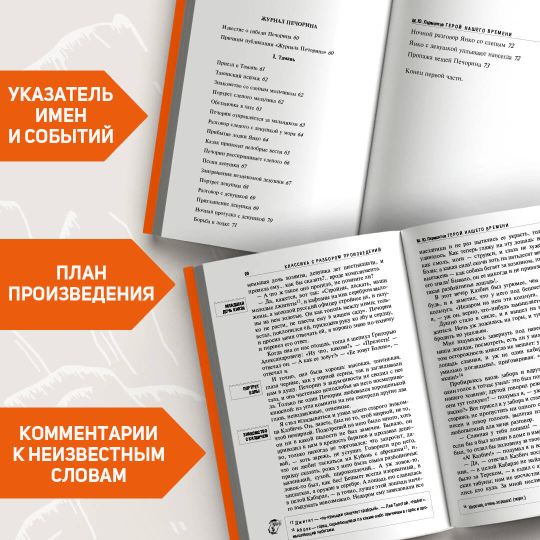 «Герой нашего времени» - первый в русской литературе социально-психологический роман, написанный в XIX веке выдающимся поэтом и прозаиком М. Ю. Лермонтовым. Эта гениальная книга до сих пор пользуется большой популярностью как среди школьников, так и среди представителей старшего поколения. Новое издание романа в невероятном оформлении с голографической фольгой на обложке станет не только незаменимым помощником в подготовке к ЕГЭ, ОГЭ, урокам литературы, но и приятным подарком для всех ценителей классической литературы. В нем вы найдете уникальные справочные материалы: заметки на полях для быстрого поиска нужного фрагмента, развернутые комментарии, где объясняются устаревшие слова и непонятные факты, историю создания произведения, указатель имен и событий. Все это поможет не только быстро и легко подготовиться к экзаменам, но и узнать новые факты, которые можно было упустить в школе. В произведении рассказывается о жизни и приключениях русского офицера Григория Печорина, полного противоречий. Сложный характер, эгоистичность, скептическое и безучастное отношение к миру и обществу делают его «лишним человеком», символом своего времени. Нарушенная хронология позволяет постепенно добраться до глубин хаотичной души героя, который ставит перед собой важнейшие вопросы о цели и смысле человеческого бытия, о назначении человека в этом мире. Собрание всех книг серии «Классика с разбором произведений» в стильных обложках станет невероятным украшением домашней библиотеки. Ее яркое оформление можно будет заслуженно назвать жемчужиной вашей коллекции.