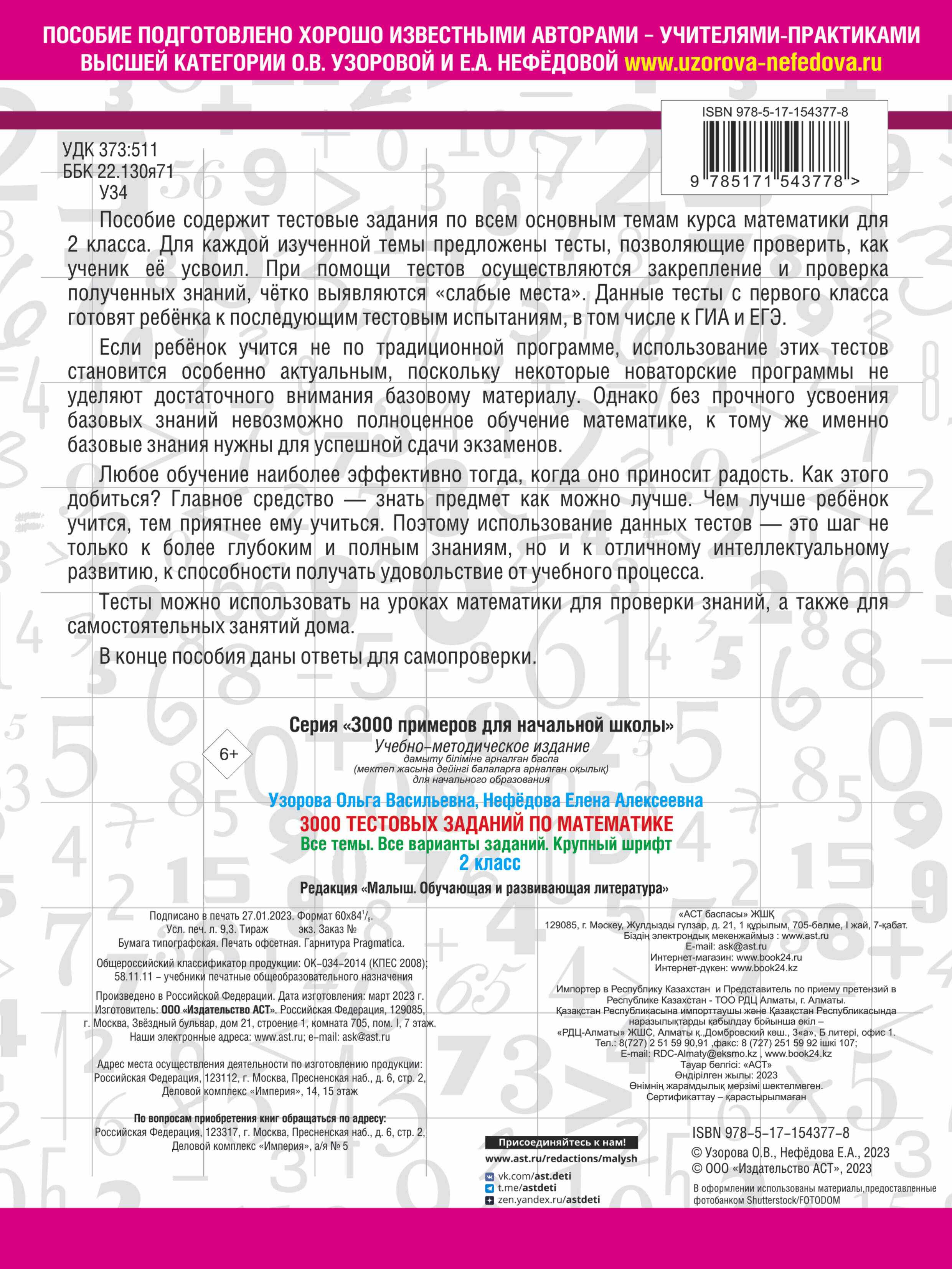 Аннотация: 3000 тестовых заданий по математике. 2 класс. Крупный шрифт. Все темы и варианты