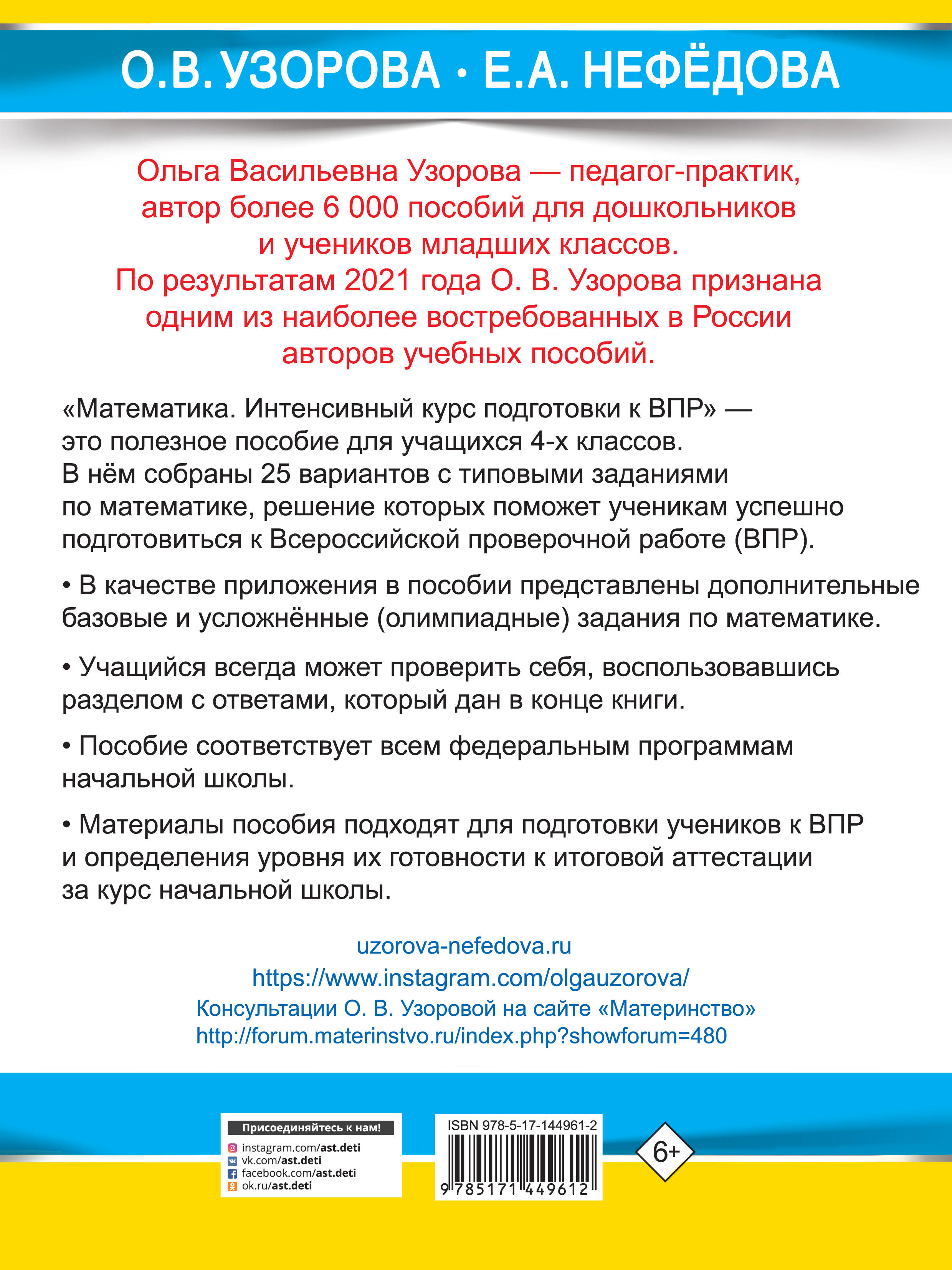 Аннотация: Математика за курс начальной школы. Интенсивный курс подготовки к ВПР