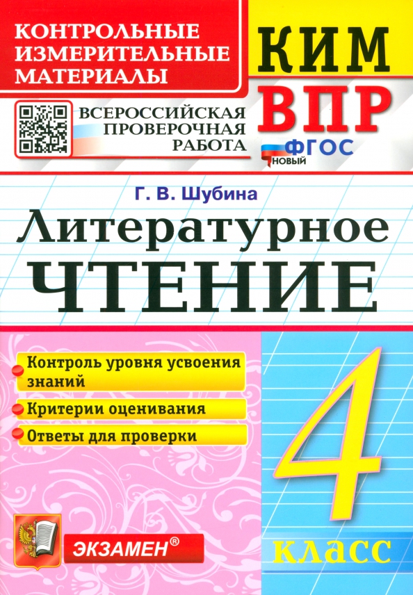 Аннотация: ВПР. Литературное чтение. 4 класс. Контрольные измерительные материалы