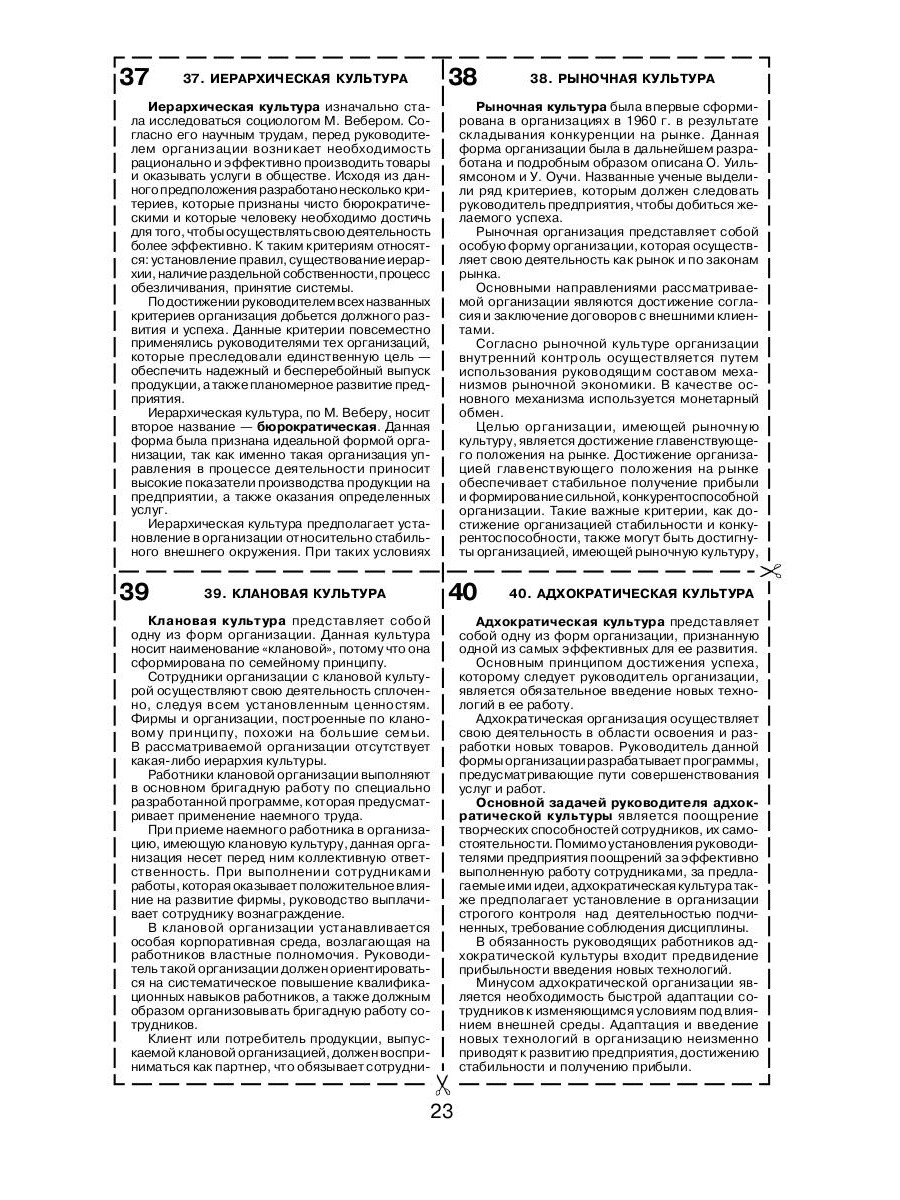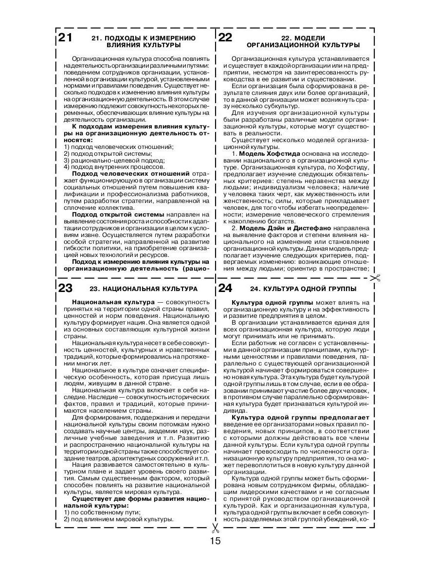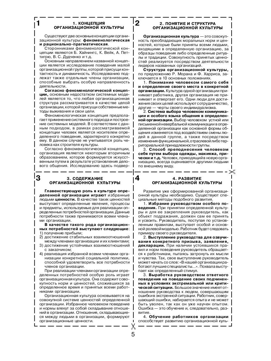 Шпаргалка представляет собой краткое пособие для быстрого изучения курса и успешной сдачи экзамена по дисциплине «Организационная культура». Предназначена для преподавателей и студентов.