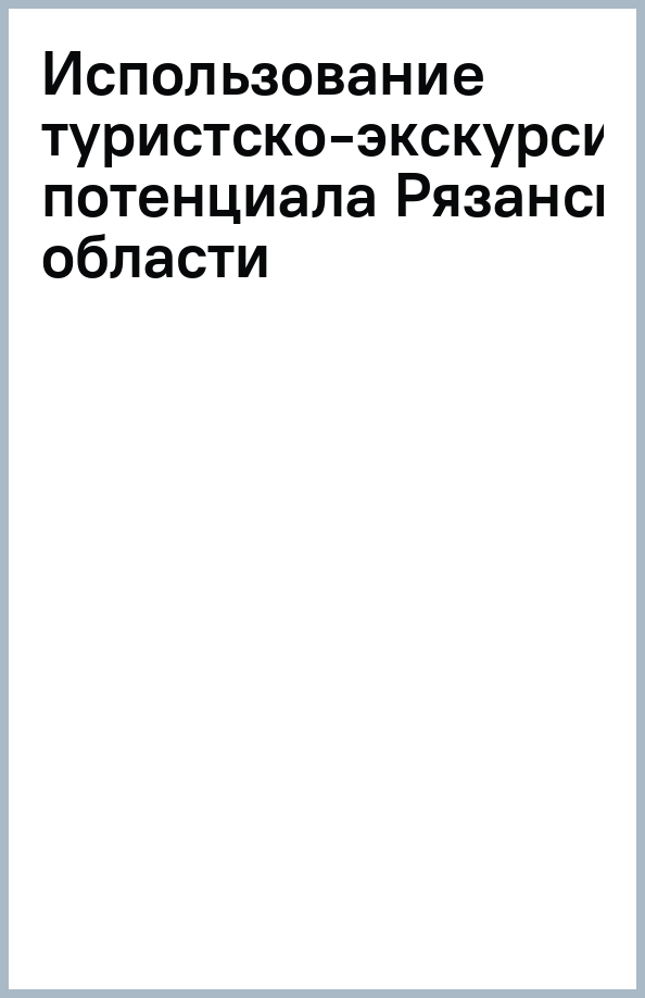 Аннотация: Использование туристско-экскурсионного потенциала Рязанской области