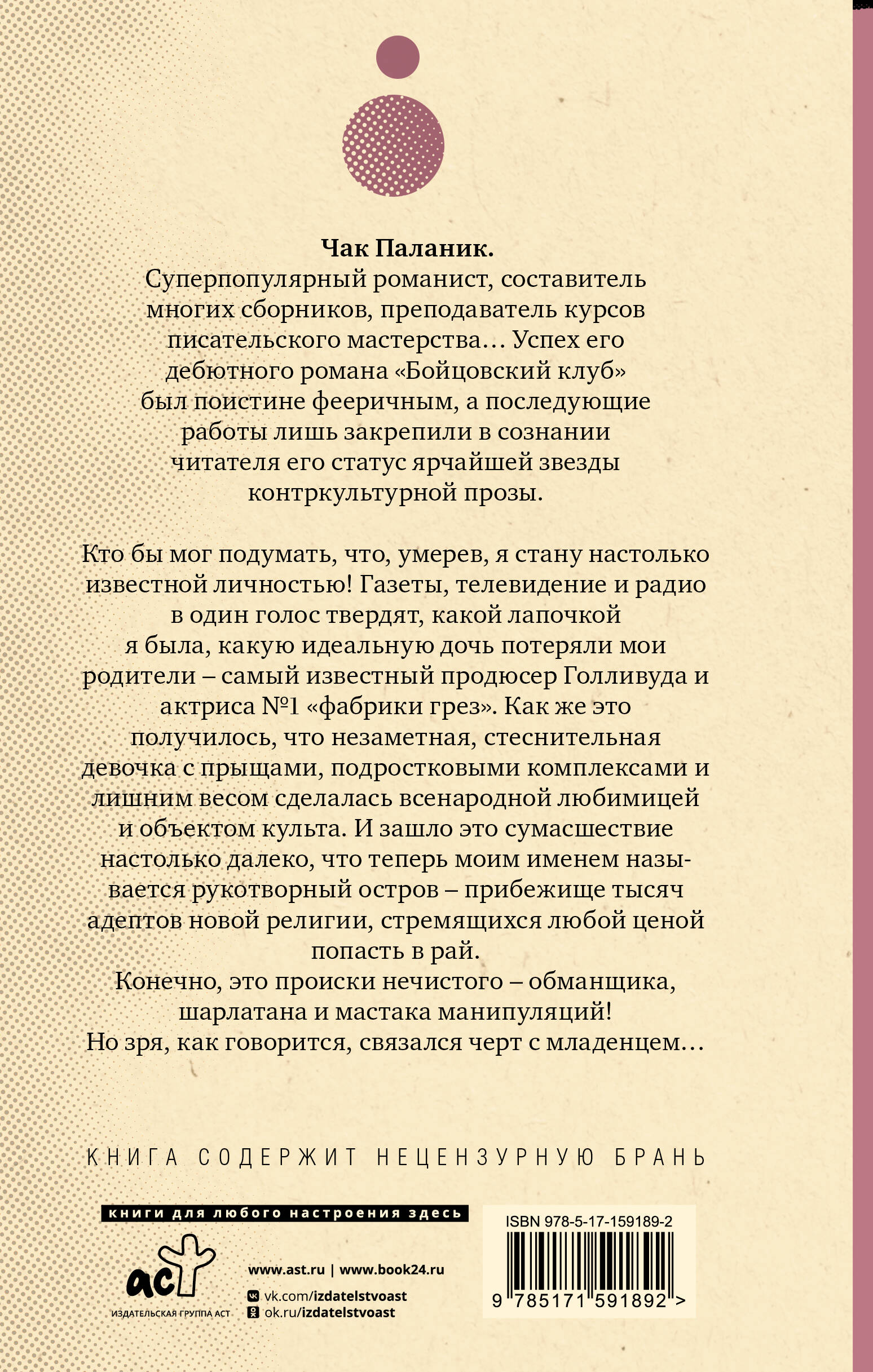Кто бы мог подумать, что, умерев, я стану настолько известной личностью! Газеты, телевидение и радио в один голос твердят, какой лапочкой я была, какую идеальную дочь потеряли мои родители - самый известный продюсер Голливуда и актриса №1 "фабрики грез". Как же это получилось, что незаметная, стеснительная девочка с прыщами, подростковыми комплексами и лишним весом сделалась всенародной любимицей и объектом культа, и зашло это сумасшествие настолько далеко, что теперь моим именем называется рукотворный остров - прибежище тысяч адептов новой религии, стремящихся любой ценой попасть в рай? Конечно, это происки нечистого - обманщика, шарлатана и мастака манипуляций! Но зря, как говорится, связался черт с младенцем…| Издательство | Издательство "АСТ" |
