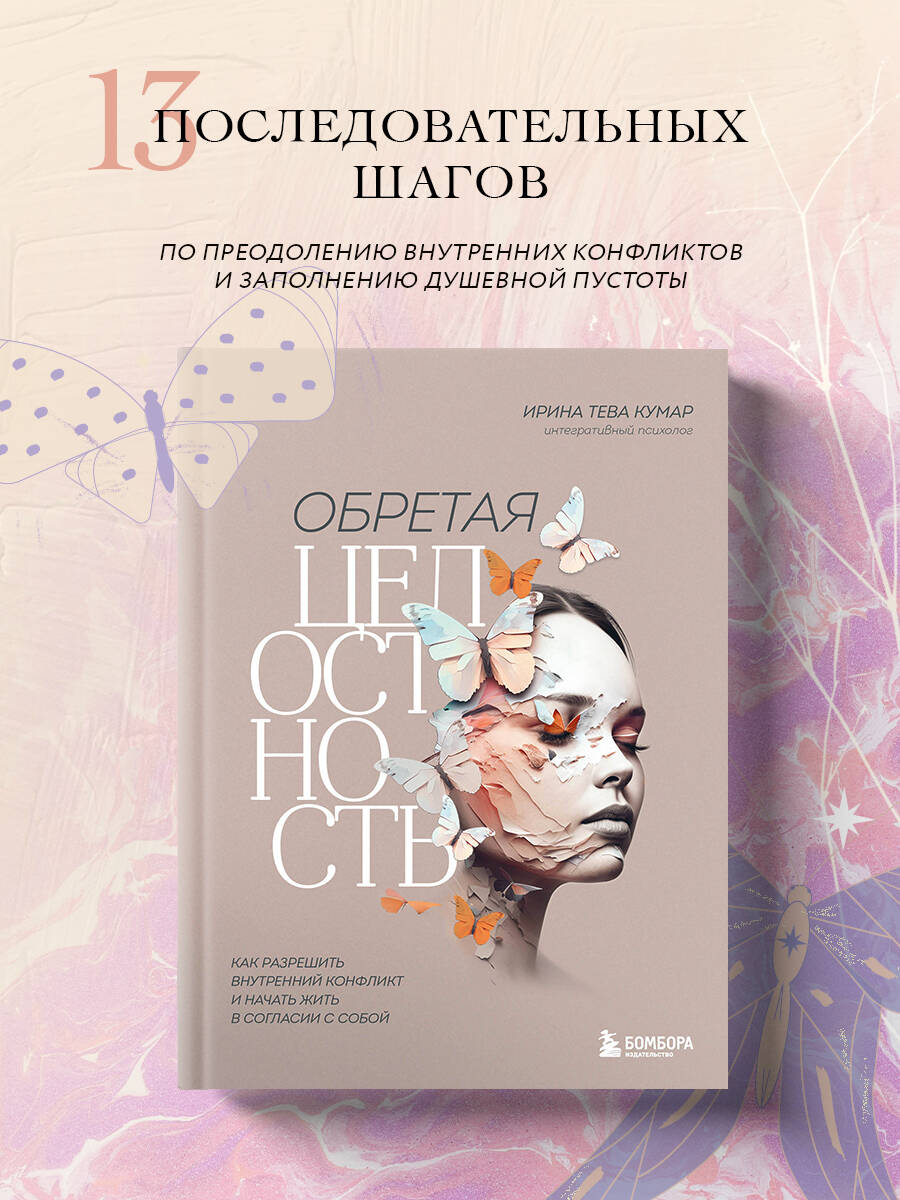 Ирина Тева Кумар - интегративный психолог, преподаватель Московского института психоанализа. На ее счету более 10 000 консультаций. Целостность - это единство и гармоничное взаимодействие всех сторон личности. Когда она нарушается, мы чувствуем внутреннюю пустоту, тревогу и напряжение. Чтобы от них избавиться, мы пытаемся занять себя работой или развлечениями, бесконечным саморазвитием и поиском смысла жизни. Но единственный путь к целостности - принятие себя. Эта книга предлагает 13 последовательных шагов по преодолению внутренних конфликтов и заполнения душевной пустоты. Вас ждут: • путешествие за кулисы психологической работы; • истории Ирины и ее клиентов об обретении целостности; • практические упражнения после каждой из 13 глав; • осознание своей уникальности. ОТЗЫВЫ «Благодаря этой книге вы сделаете 13 шагов навстречу своей целостности. Запаситесь смелостью перед тем, как отправиться в путь. Он пройдет по потаенным уголкам вашего внутреннего мира. В путешествии шаг за шагом вы обретете необходимую устойчивость. И в конце уникальный узор вашей личности заиграет всеми красками». - Елена Садова, психолог, аналитик, эксперт журнала Psychologies, автор книги «Тревога не то, чем кажется» «Многие знают, как тяжело жить с ощущением "со мной что-то не так". Ирина Тева Кумар рассказала о нем так, что даже узнавание себя через текст может оказаться целительным. А последовательная работа с заданиями обязательно приблизит читателей к появлению внутри себя… другого себя. Более живого, интересного, взрослого. Словом, более целостного». - Юлия Пирумова, психотерапевт, psy-журналист, автор книг «Все дороги ведут к себе» и «Хрупкие люди»