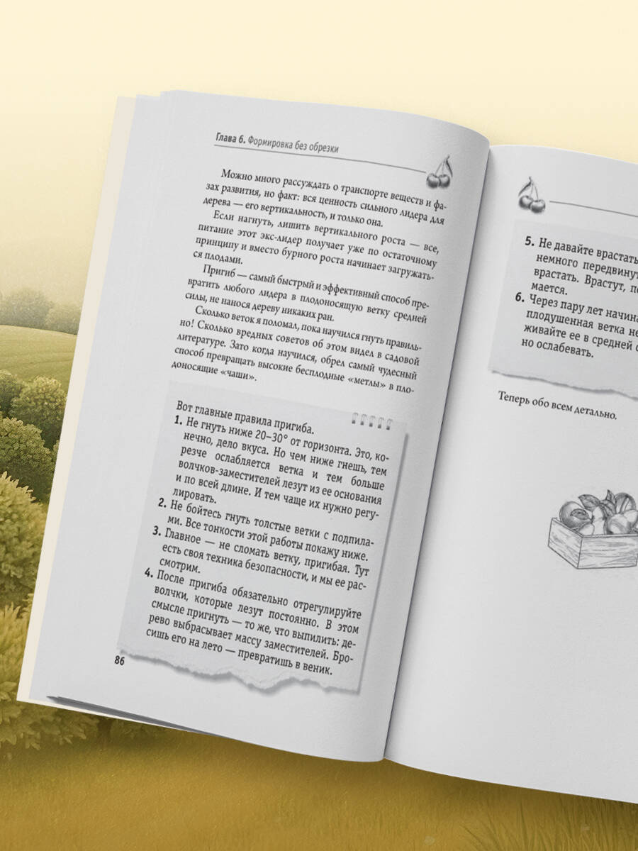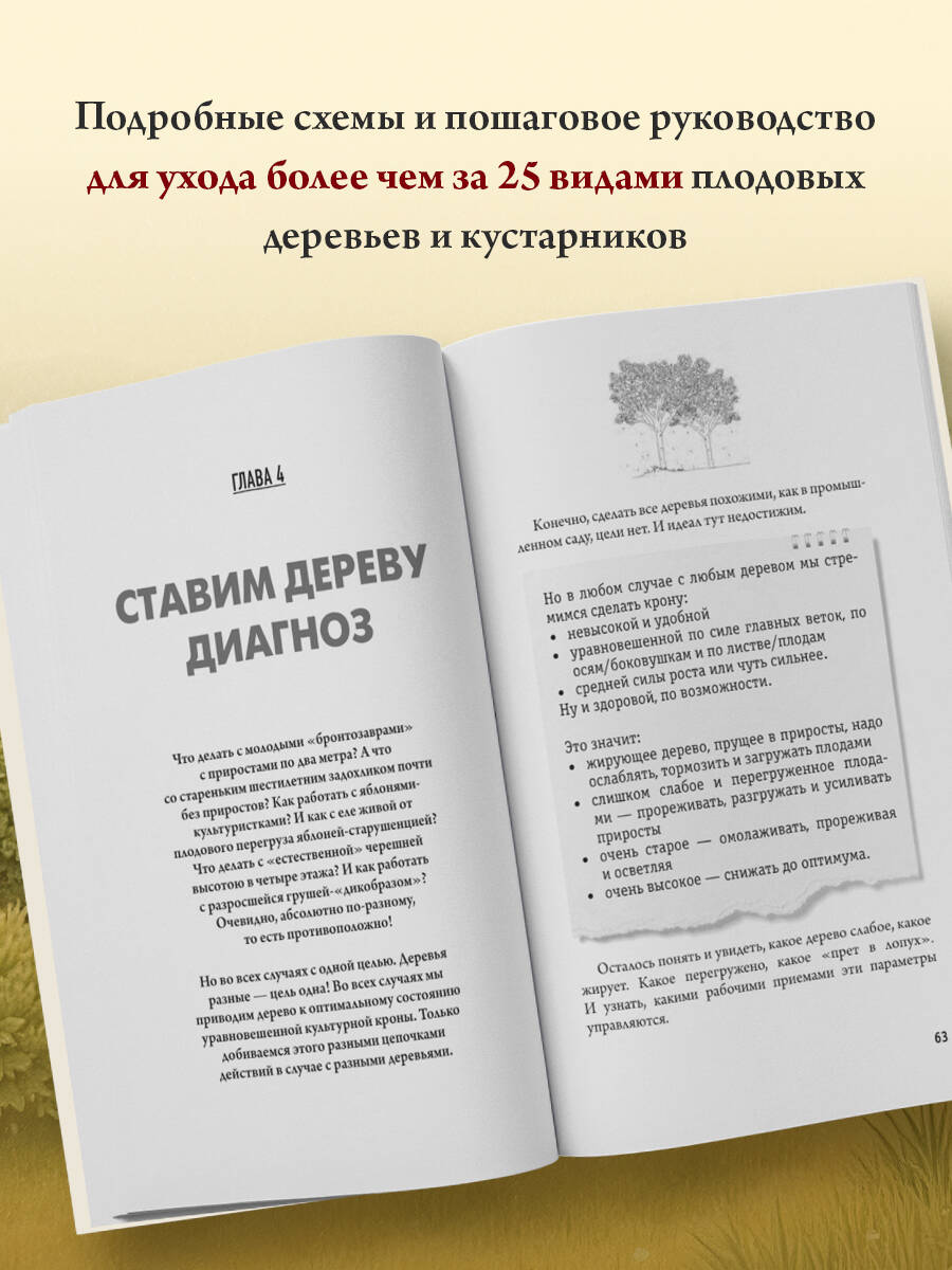 Боитесь навредить растениям во время обрезки? Не знаете, с чего начать? Николай Курдюмов, эксперт с 30-летним стажем, поможет разобраться в обрезке и формировке плодовых кустарников и деревьев, даже если вы никогда не держали секатор в руках. Вы научитесь правильно формировать крону и регулировать силу прироста. Разберетесь в том, что такое заплодушивание, нормировка и омоложение дерева и кто такие побеги-заместители. Автор на примере более 25 кустарников и растений рассказывает: - Чем обрезка семечковых отличается от обрезки косточковых? - Какие культуры плодоносят только на летних приростах? - На каком расстоянии друг от друга стоит сажать различные культуры? - Что такое плодовый поллардинг?| Издательство | ООО "Издательство "Эксмо" |