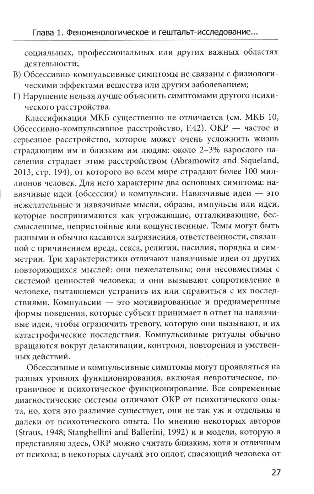 Эта книга является продуктом сотворчества авторов из разных стран, каждый из которых обладает уникальными теоретическими взглядами, произрастающими из различных философских предпосылок и обширного клинического опыта работы с клиентами с обсессивно-компульсивным спектром переживаний. В ней через призму индивидуальной, диалогической и полевой парадигм гештальт-терапии очерчиваются рамки обсессивно-компульсивного опыта, глубоко освещается его специфическая феноменология и предлагаются различные опоры для практической работы. Книга предлагает разносторонне разработанные теоретические концепции, которые подробно проиллюстрированы разбором клинических случаев. Отдельное внимание уделяется взаимосвязи обсессивно-компульсивного типа страданий с социокультурными процессами.| Издательство | Институт общегуманитарных исследований (ИОИ) |