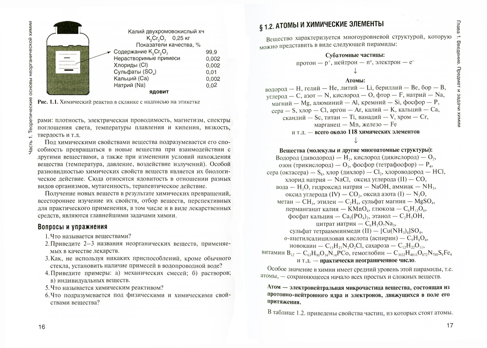 Представленное второе издание учебника «Общая и неорганическая химия» состоит из трех частей. В первой части изложены теоретические основы неорганической химии. Рассмотрены основополагающие понятия химии; состав, свойства и применение растворов; закономерности протекания химических реакций. Во второй части отражена химия элементов. Рассмотрены свойства химических элементов на основе периодической системы элементов. Даны общая характеристика элементов, важнейшие типы химических соединений; описаны биологическая роль, особенности экологии, химические основы фармацевтического применения. Третья часть содержит практические и лабораторные работы. Приведены задания по всем темам курса химии и методики выполнения несложных химических экспериментов. Разобраны многочисленные примеры. Во всех разделах даны контекстные упражнения, а также вопросы и упражнения в конце параграфов. Во втором издании устранены замеченные опечатки, уточнены некоторые определения, в таблицу Менделеева включены новые химические элементы. Учебник предназначен студентам средних фармацевтических учебных заведений.| Издательство | ГЭОТАР-Медиа |