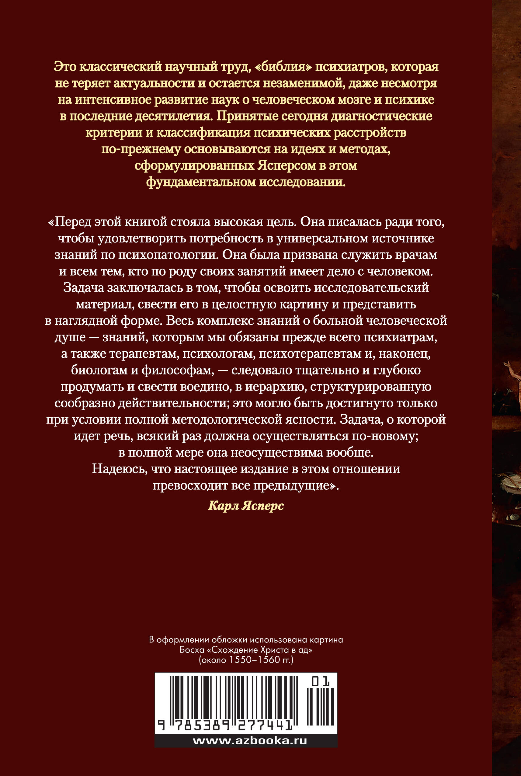 Карл Ясперс (1883-1969) прославился в первую очередь как философ, один из основоположников экзистенциализма, чье влияние отмечали Альбер Камю, Жан-Поль Сартр, Ханна Арендт. Однако Ясперс был не только философом, но и врачом-психиатром, и выросшая из его докторской диссертации "Общая психопатология" - результат нескольких лет работы в психиатрической больнице. Ясперс был глубоко не удовлетворен существовавшими в его время подходами к изучению и лечению душевных болезней, он считал, что эта отрасль медицины находится в глубоком кризисе, и поставил себе амбициозную задачу разработать новые научные основания для психиатрии. Фактически он создал философию психиатрии, разработал новый язык и категориальный аппарат для описания и классификации психических расстройств. Первое издание "Общей психопатологии" вышло в 1913 году, когда Ясперсу было 30 лет; книга стала делом его жизни, при каждом переиздании он перерабатывал и расширял ее - вплоть до 1959 года, когда вышло 7-е издание. Это классика психиатрической литературы, настольная книга психиатров, которая, даже несмотря на интенсивное развитие наук о человеческом мозге и психике в последние десятилетия, остается незаменимой. Принятые сегодня диагностические критерии, как и классификация психических расстройств, по-прежнему основываются на идеях и методах, изложенных в этой работе.| Издательство | Азбука-Аттикус Издат.группа ООО |