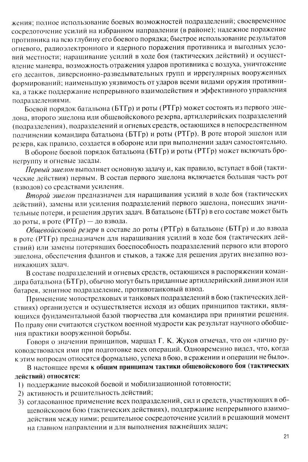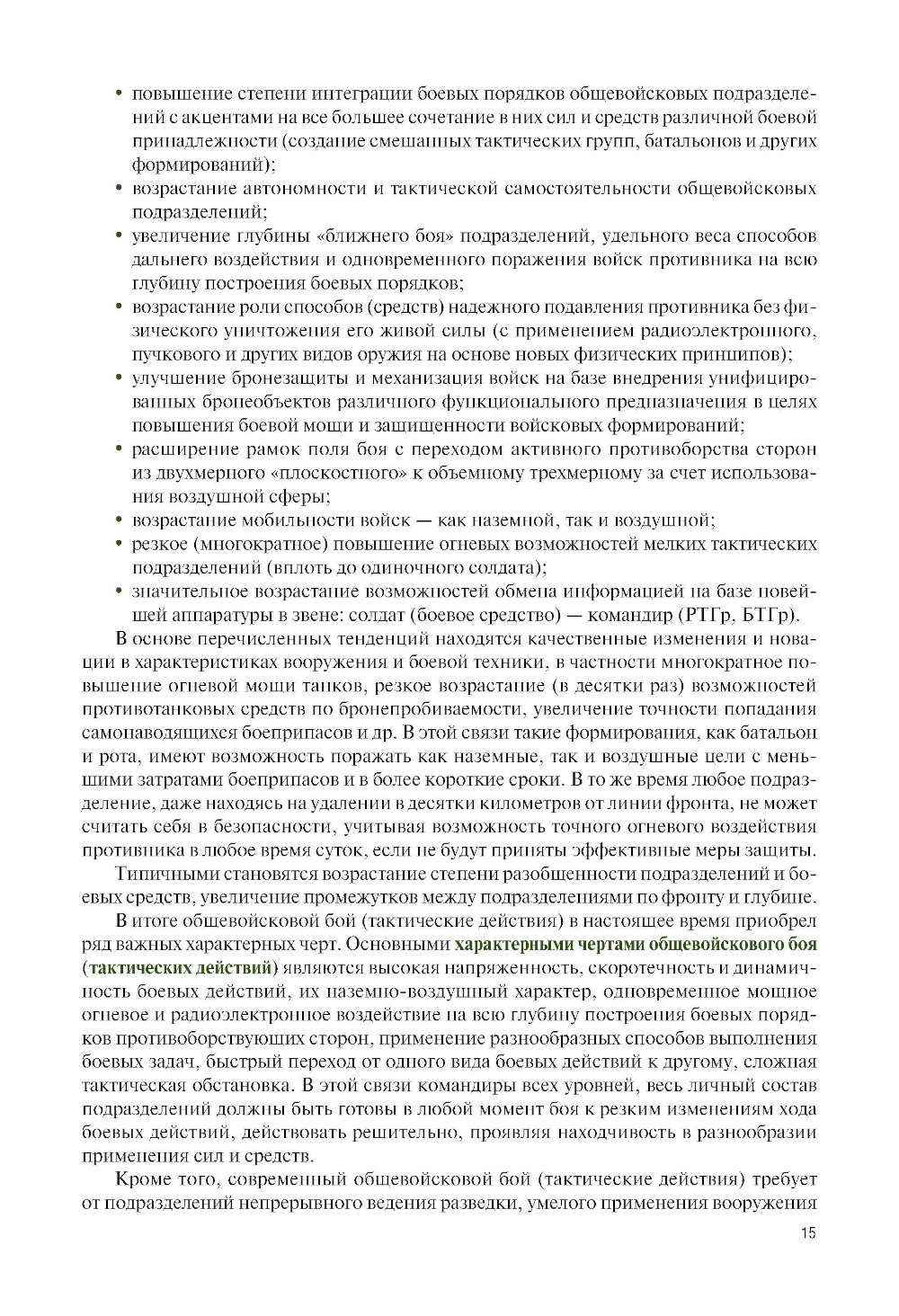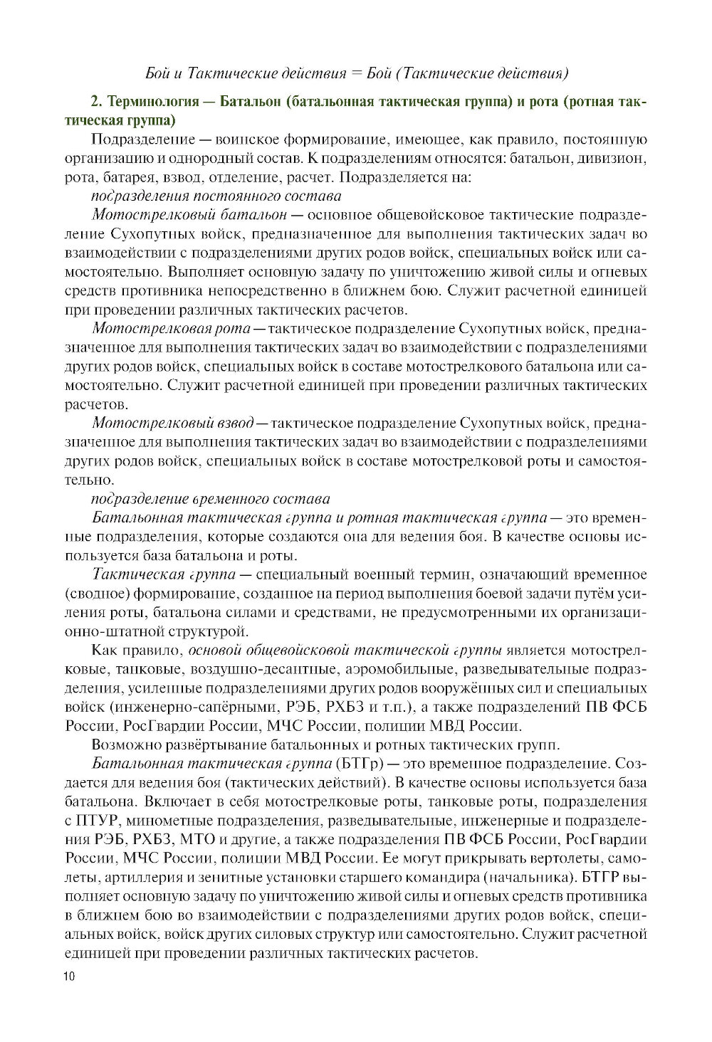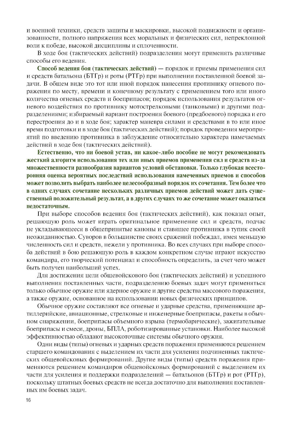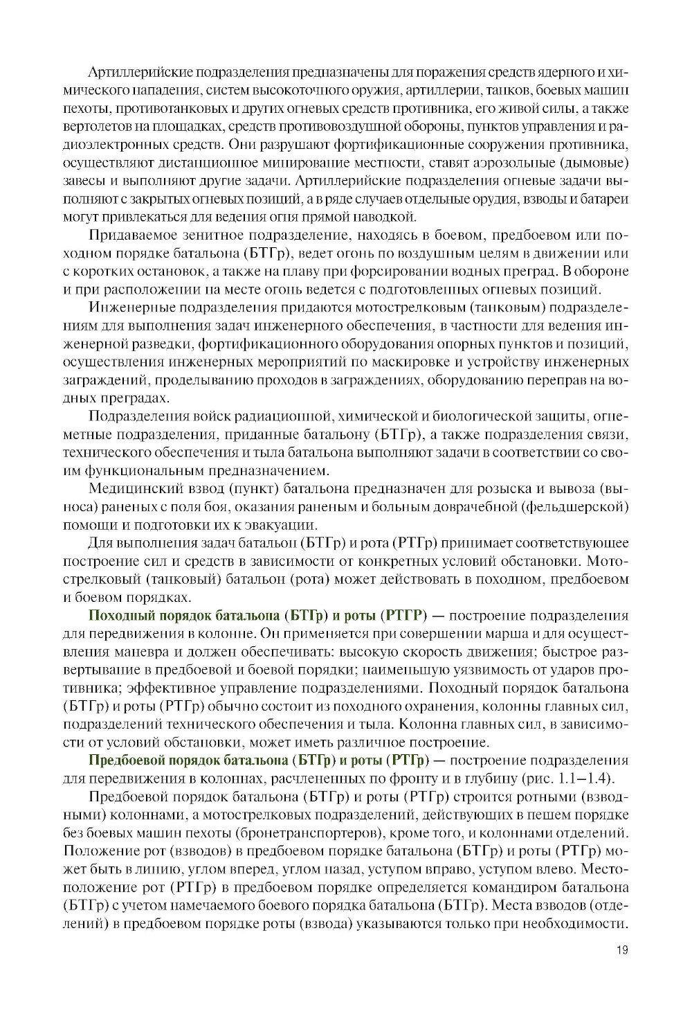 Излагаются основные положения по подготовке и ведению общевойскового боя мотострелковыми, танковыми и пулеметно-артиллерийскими батальонами и ротами во взаимодействии с подразделениями других родов войск Вооруженных Сил РФ. Основное внимание уделяется подготовке и ведению боевых действий с применением только обычного оружия. Разработан на основе положений Боевого устава по подготовке и ведению общевойскового боя с соответствующей их детализацией и использованием конкретных примеров, в том числе из опыта боевых действий в Великой Отечественной войне и вооруженных конфликтах, произошедших в послевоенное время. Для студентов, проходящих обучение на военных кафедрах вузов, курсантов и слушателей высших военно-учебных заведений, а также офицеров тактического звена Сухопутных войск.