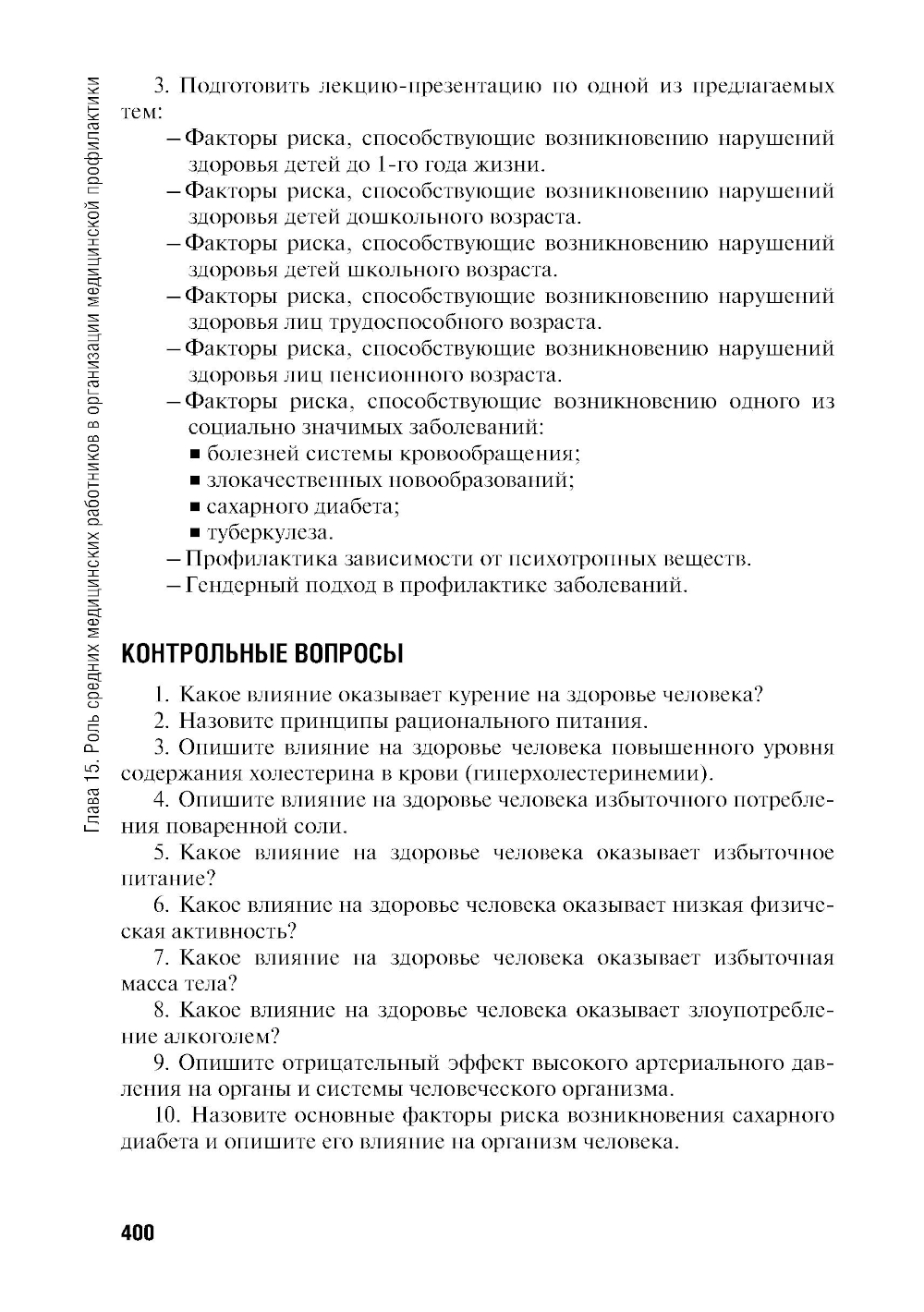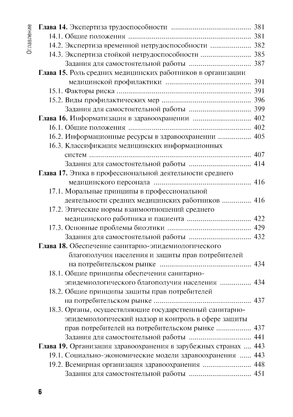 В учебнике, подготовленном в соответствии с учебной программой по дисциплине «Общественное здоровье и здравоохранение», рассмотрен широкий круг вопросов, касающихся здоровья населения, управления и экономики в здравоохранении. Показана роль среднего медицинского персонала в организации работы больничных, амбулаторно-поликлинических учреждений, скорой медицинской помощи. Особое внимание уделено вопросам оплаты труда, правовой и социальной защиты средних медицинских работников, соблюдению моральных принципов и этических норм в их профессиональной деятельности. Теоретический материал сопровождается заданиями для самостоятельной работы, включающими контрольные вопросы, тестовые задания, задачи-эталоны и задачи для самостоятельного решения. Для студентов факультетов высшего сестринского образования медицинских вузов, медицинских колледжей и медицинских училищ, преподавателей системы высшего и среднего медицинского образования, средних медицинских работников, занимающих руководящие должности в учреждениях здравоохранения.| Издательство | ГЭОТАР-Медиа |
