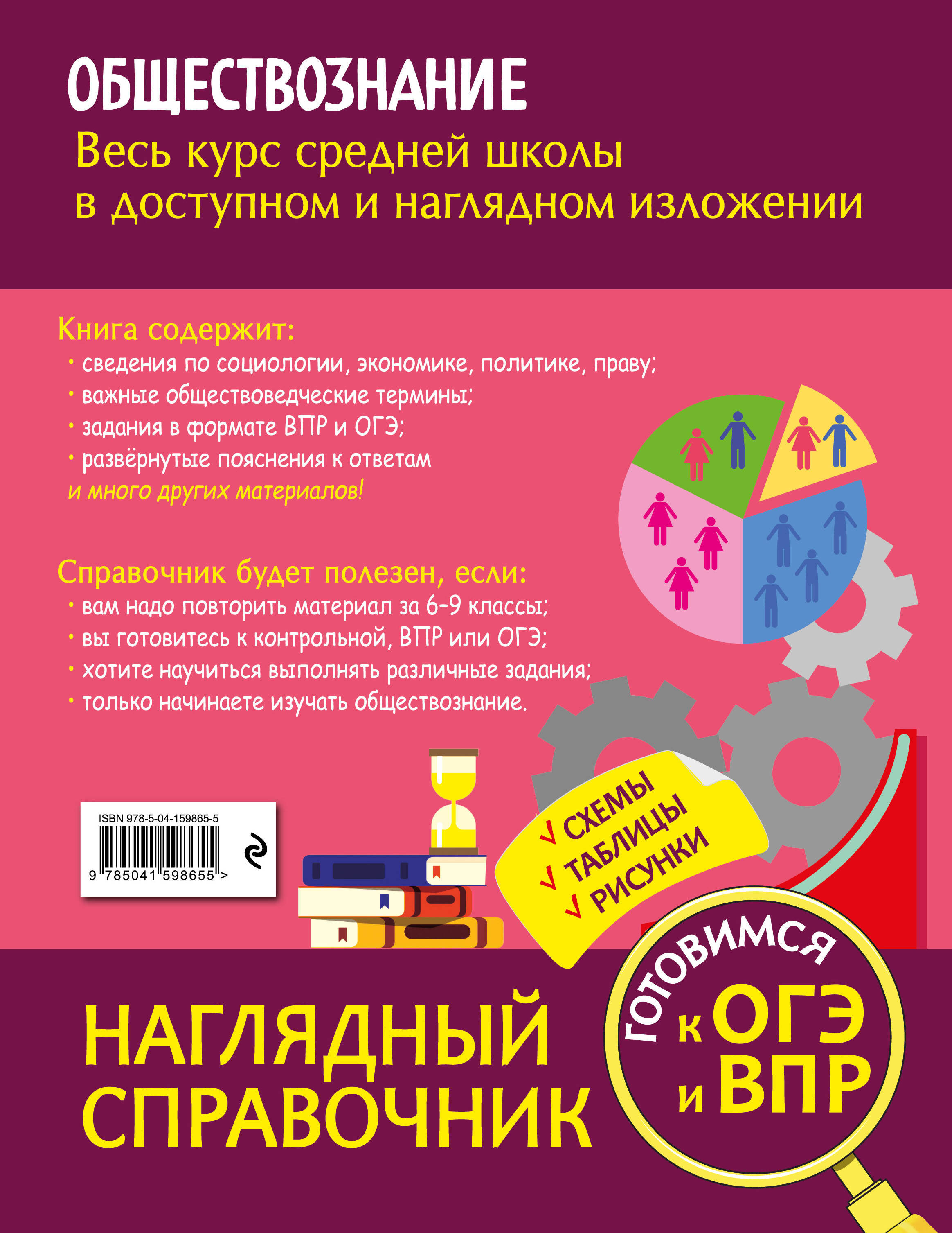 Наглядный справочник по обществознанию для подготовки к ОГЭ и ВПР станет незаменимым помощником для учеников средних классов. Пособие будет полезно, если: • вам необходимо повторить материал за 6-9 классы; • вы готовитесь к контрольной, ВПР или ОГЭ; • хотите научиться выполнять типовые задания; • только начинаете изучать обществознание. В книге вы найдёте: • сведения по социологии, экономике, политике, праву; • важные обществоведческие термины, обучающие рисунки; • ответы и решения к заданиям в формате ВПР и ОГЭ; • справочные материалы. С помощью наглядных таблиц, схем и рисунков вам будет легче, чем когда-либо, усвоить сложные темы. Большое количество типовых заданий с объяснениями сформируют стойкие навыки их выполнения и расширят ваши знания по предмету. Благодаря справочнику школьники смогут эффективно подготовиться к ВПР и ОГЭ, учителя - организовать учебный процесс, а родители - освежить в памяти школьный курс по обществознанию.| Издательство | ООО "Издательство "Эксмо" |