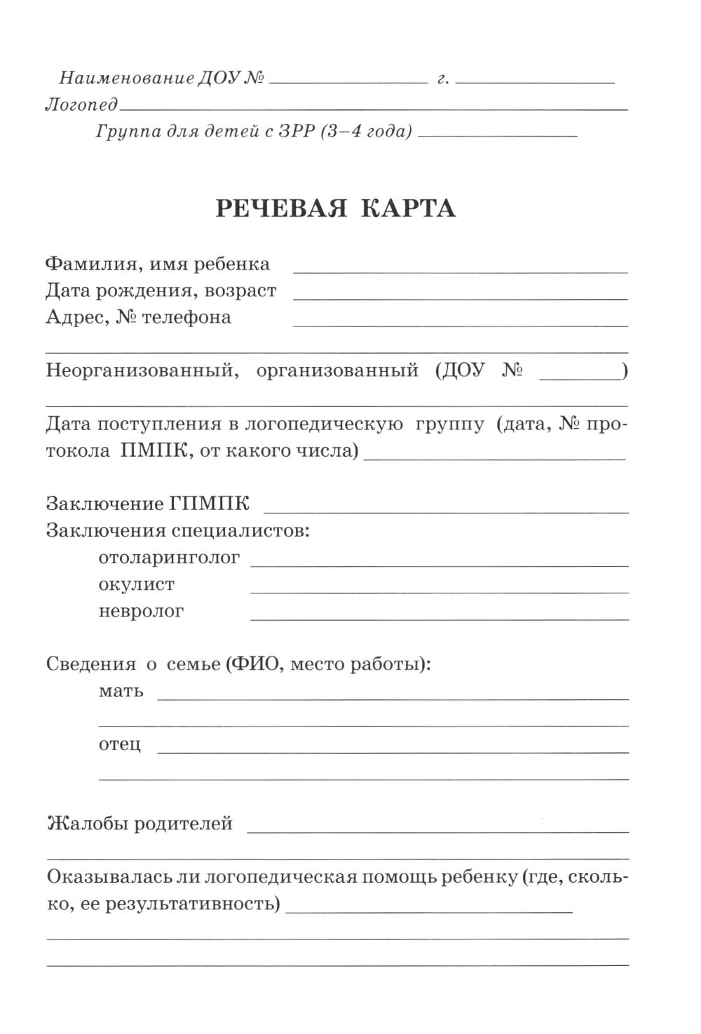 Обследование речи детей 3-4 лет с ЗРР. Речевая карта для проведения обследования во 2-й младшей группе ДОУ