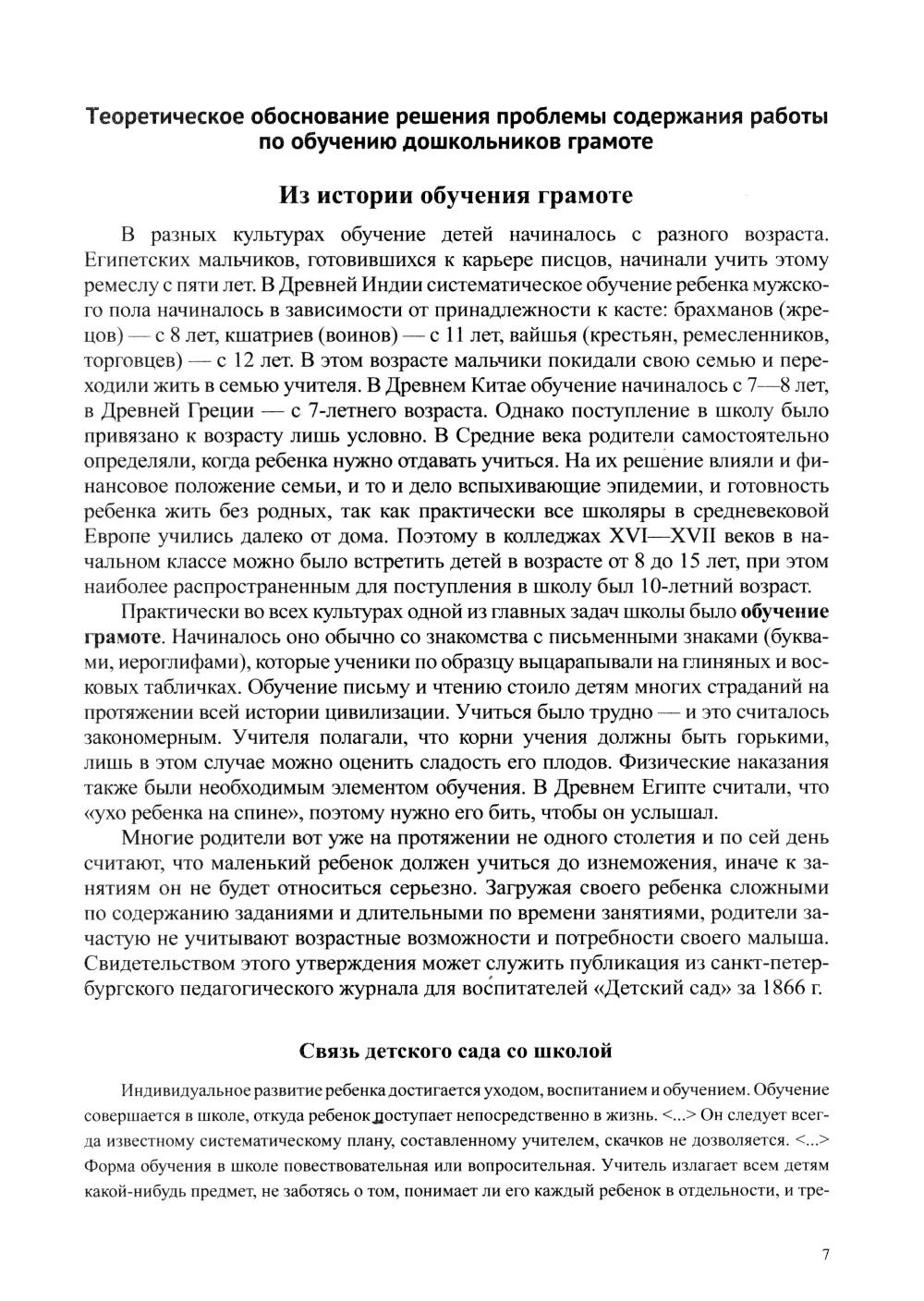 В пособии с учетом требований Федеральной образовательной программы дошкольного образования (ФОП ДО) и обновленного ФГОС ДО, а также большого практического опыта дана система работы по подготовке детей к обучению грамоте в общеразвивающих группах дошкольной образовательной организации. Книга состоит из трех частей: в первой дается теоретическое обоснование решения пробле мы, раскрываются основные направления работы по подготовке дошкольников к обучению грамоте, а также содержатся методические рекомендации по реализации раздела «Подготовка детей к обучению грамоте» образовательной области «Речевое развитие» ФОП ДО в группах младшего и среднего дошкольного возраста. Во второй и третьей частях представлена система занятий по подготовке старших дошкольников к обучению грамоте, рассчитанная на два года. Образовательные задачи и содержание образовательной деятельности в данном пособии соответствуют ФОП ДО. Издание предназначено педагогам ДОУ, студентам высших и средних педагогических заведений, а также родителям дошкольников