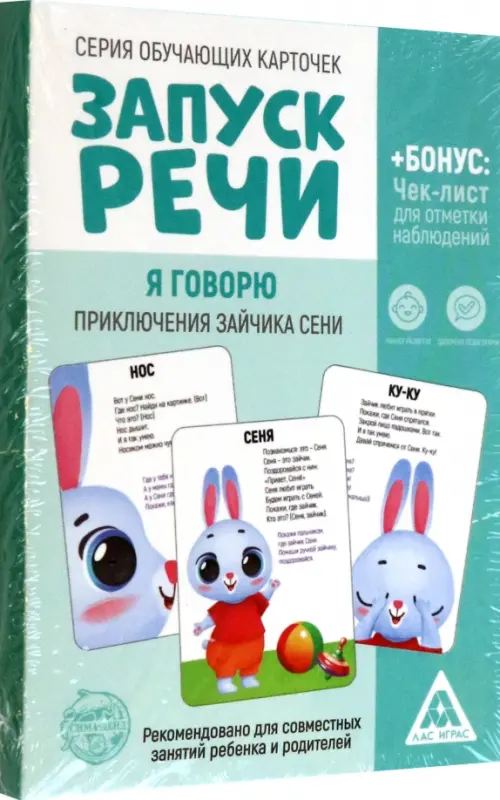 Обучающие карточки Запуск речи. Я говорю. Приключения зайчика Сени, 15 карточек А6