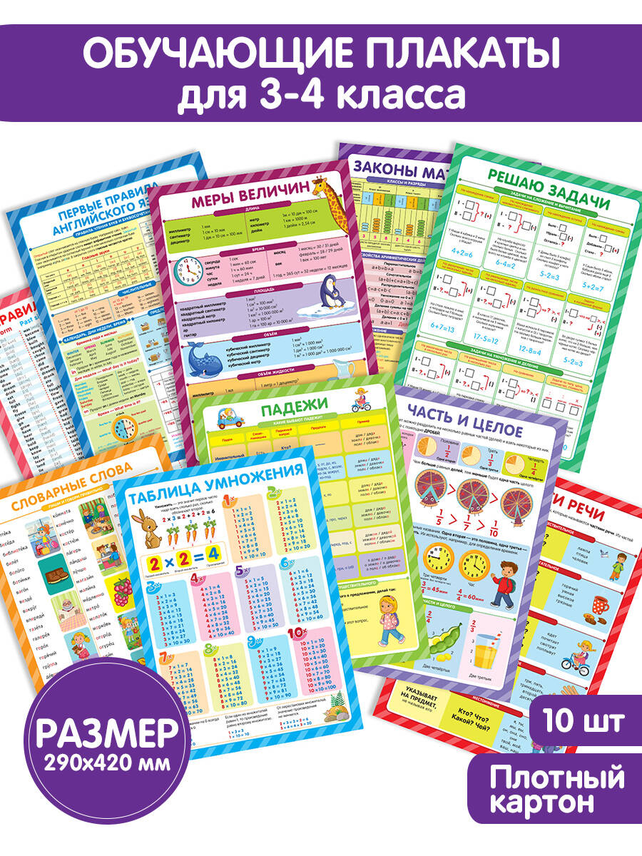 Набор обучающих плакатов для малышей "Учусь на отлично" - это удобный и красочный способ систематизировать знания, выучить самое важное, оформить рабочее место школьника. Это десять самых актуальных тем, которые пригодятся вашему ребёнку в 3-4 классе начальной школы и для гармоничного всестороннего развития: таблица умножения, словарные слова, дроби и падежи, неправильные глаголы. Занимайтесь вместе с плакатами "Учусь на отлично" - учитесь в школе с интереосм и лёгкостью!| Издательство | АЛЬ ПАКО ООО |