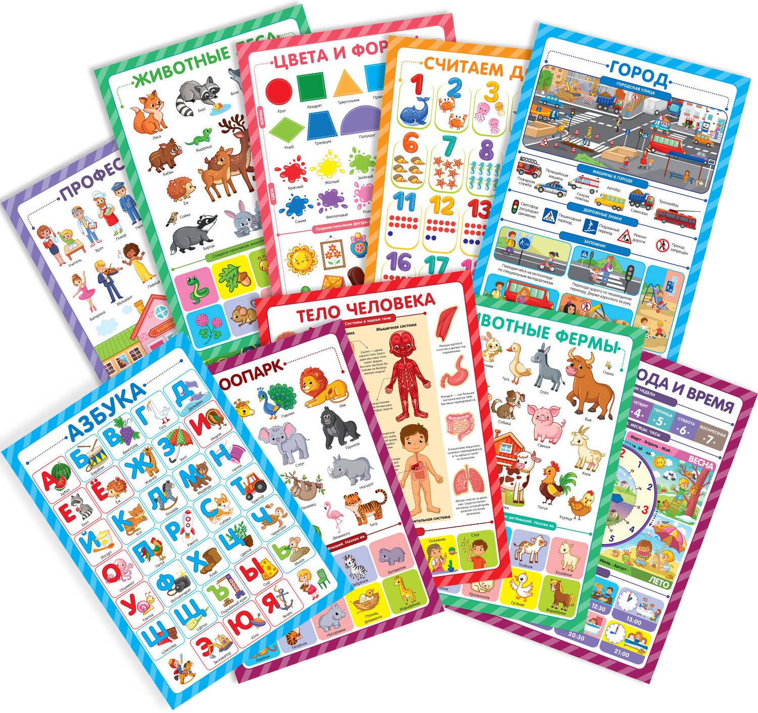 Обучающие плакаты. Знания для дошкольников. Набор 10 штук