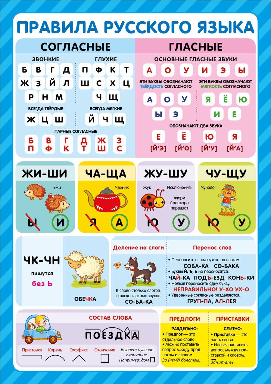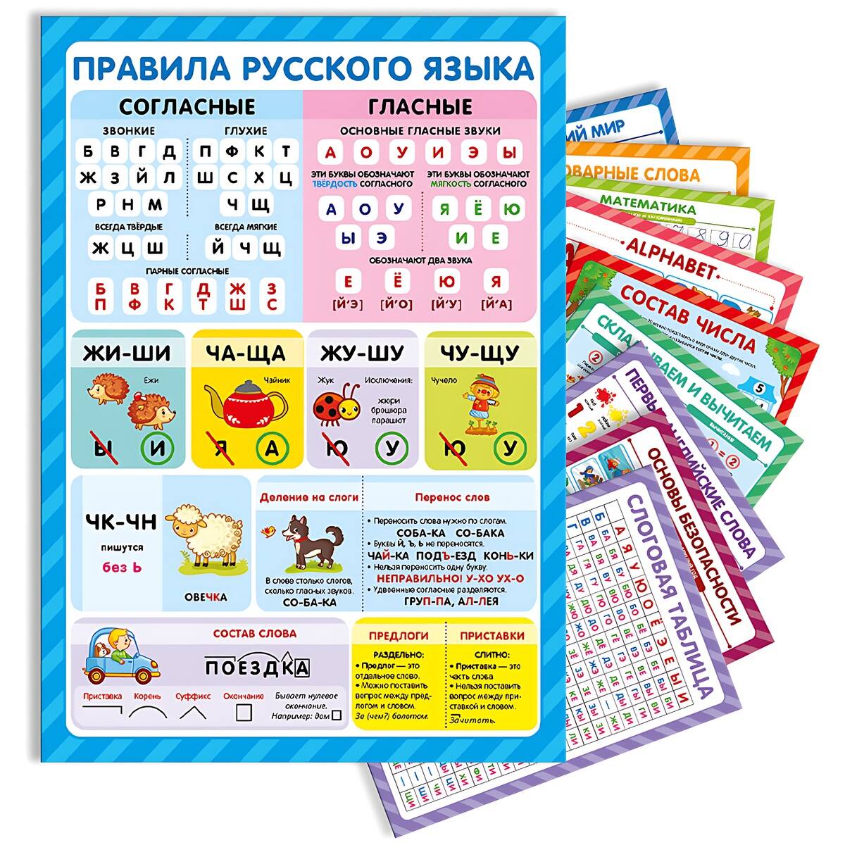 Набор обучающих плакатов для малышей "Знания для школьников" - это удобный и красочный способ систематизировать знания, выучить самое важное, оформить рабочее место первоклассника. Это десять самых актуальных тем, которые пригодятся вашему малышу в 1-2 классе начальной школы и для гармоничного всестороннего развития: шпаргалки для обучения чтению, важнейшие правила русского языка, арифметика, английский язык. Занимайтесь вместе с плакатами "Знания для школьников" - учитесь в школе с интереосм и лёгкостью!| Издательство | АЛЬ ПАКО ООО |