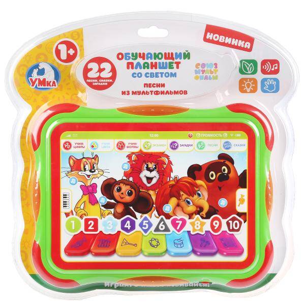 Аннотация: Обучающий планшет песни из м/ф, "Союзмультфильм" учим цифры, формы и цвета "Умка" в кор.2*24шт