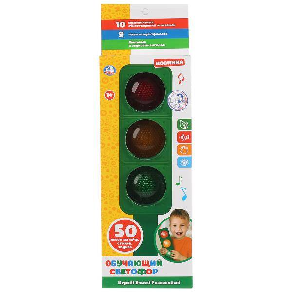 Развивающая игрушка "Светофор" ТМ "УМка" - созданный для маленьких водителей без сомнения понравится вашему малышу! Комплектация и функции приведёт в восторг малыша: - 10 музыкальных стихотворений М. Дружининой: "Светофор (зелёный свет)", "Светофор (красный свет)", "Светофор (жёлтый свет)", "Машина", "Маршрутка", "Пожарная машина", "Полиция", "Такси", "Самосвал" - 1 потешка: "Ехали-ехали" - 9 песен из мультфильмов: "Голубой вагон", "Карусель", "Песенка крокодила Гены", "По дороге с облаками", "Чунга-Чанга", "Бременские музыканты", "Всё мы делим пополам" и другие. - световые и звуковые сигналы - устойчивая ножка С такой замечательной игрушечкой ваш ребёнок будет легко и с удовольствием учиться, в игровой форме быстро и эффективно усваивать новые знания и, конечно же, веселиться. Играя с игрушкой ТМ "УМка" ребёнок будет развивать: - фантазию и воображение - образное и логическое мышление - слуховое восприятие и музыкальный слух - внимание - память Игрушка одобрена педиатром Комаровским. Материал: пластмасса + металл. Размер игрушки: 10 х 30 х 10 см. Размер индивидуальной коробки: 10 х 31 х 5,5 см. Укомплектовано 3 батарейками типа ААА. Рекомендовано детям от 1 года.| Издательство | СИМБАТ ООО |