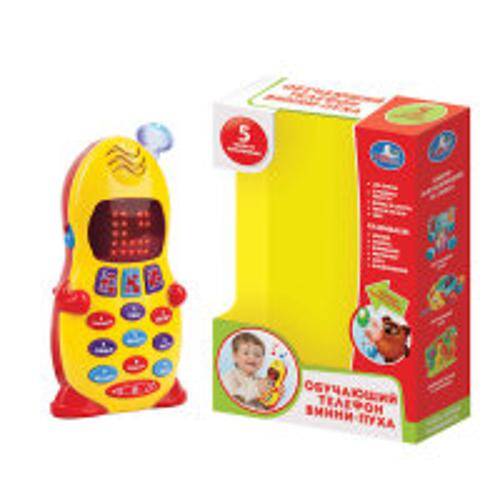 ОБУЧАЮЩИЙ ТЕЛЕФОН "УМКА" "ВИННИ-ПУХ" СВЕТ+ЗВУК, 5 ПЕСЕН, 3 РЕЖИМА В РУСС. КОР. в кор.2*12шт