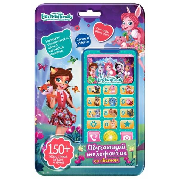 Обучающий телефончик ЭНЧАНТИМАЛС 150 песен,стихов,загадок,звуков.свет.блист.бат. Умка в кор.120шт