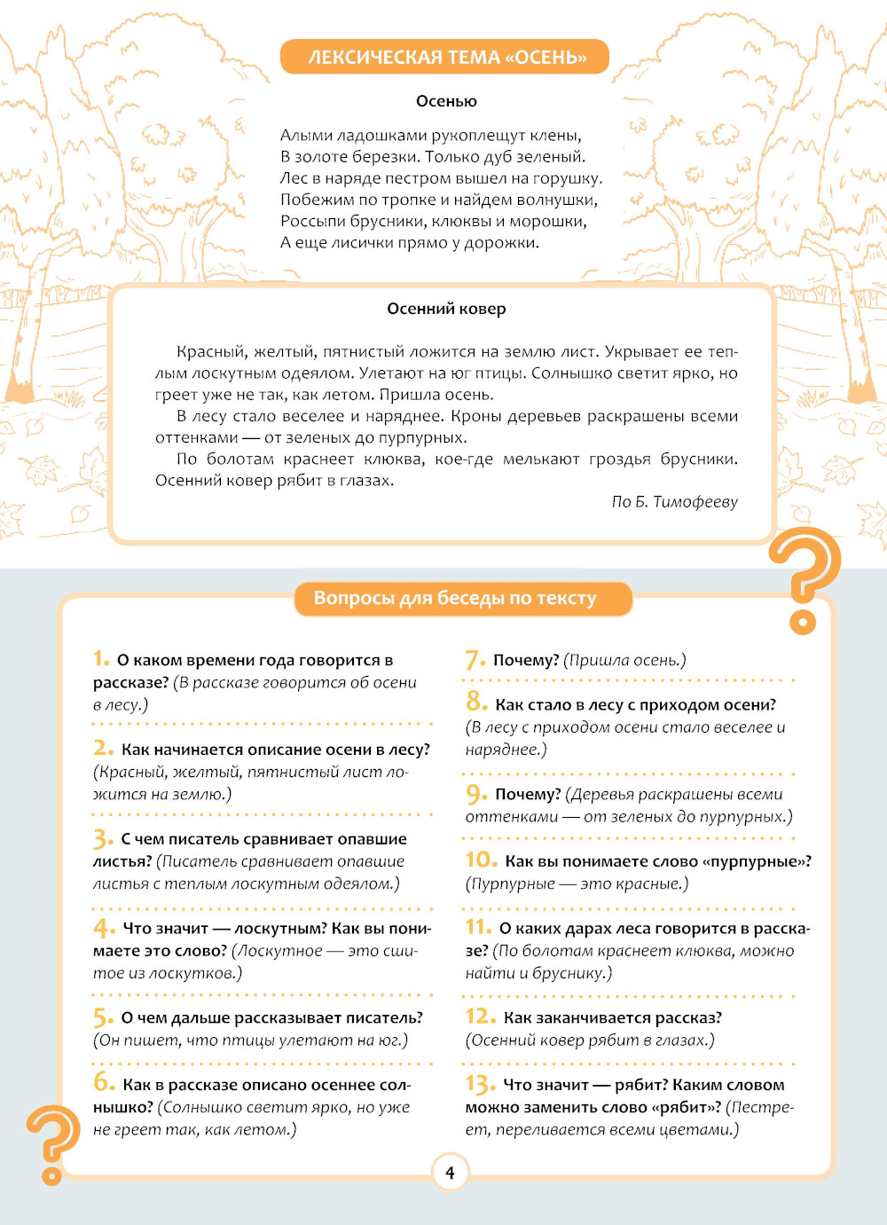 Комплект из 4 книг. В пособии представлены адаптированные для дошкольников рассказы русских писателей (только такие тексты могут показать детям истинную красоту русского языка!), вопросы для организации бесед по ним, подборки опорных картинок и тексты для организационных моментов. Пособие адресовано учителям-логопедам, педагогам ДОО, учреждений дополнительного образования и родителям дошкольников.| Издательство | Детство-Пресс |