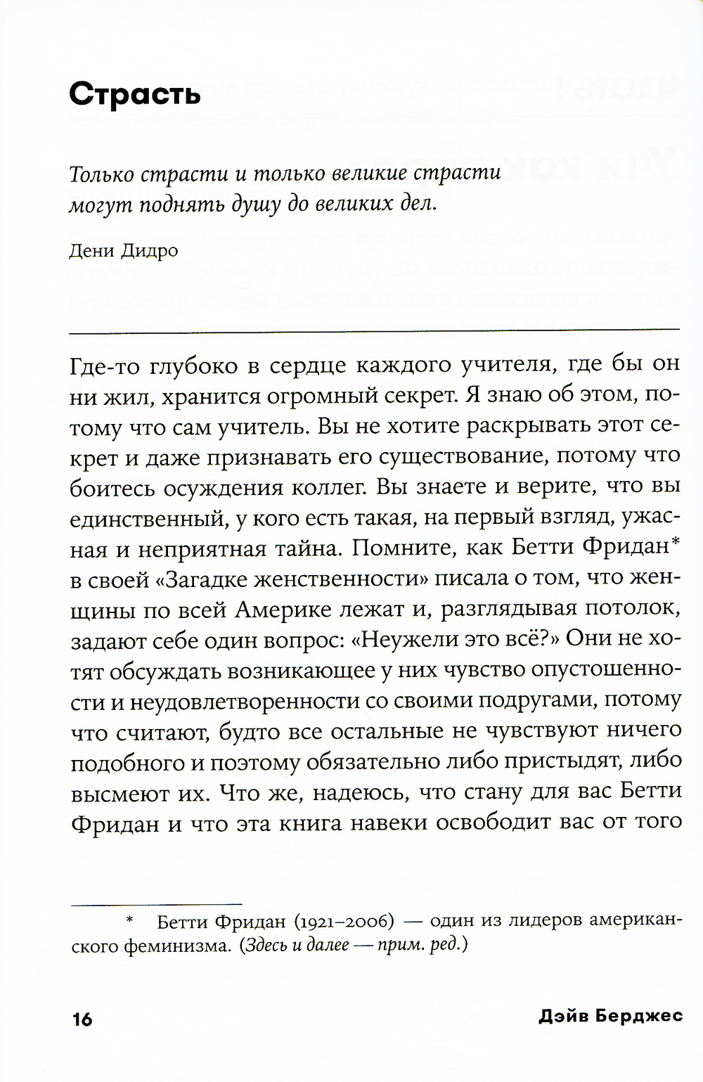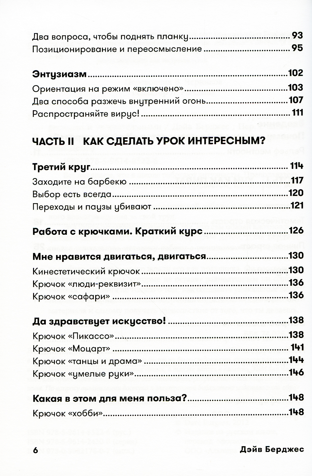 Все мы знаем, что в школе работают энтузиасты. Преподаватель должен быть страстно увлечен своим предметом, вдохновлять, воспитывать, направлять, находить подход. И все это в жестких рамках учебного плана, огромной методической работы и зачастую скромного вознаграждения за свой труд. Эта книга призвана вдохновить тех, кто сам обязан вдохновлять каждый день самую сложную аудиторию - детей. Дэйв Берджес создал уникальную методику работы с учениками. Он утверждает, что любой педагог способен сделать так, чтобы учащиеся не просто полюбили его предмет, но ждали его как праздника. Он раскрывает конкретные приемы, которые не оставят равнодушным ни одного ученика. Эта книга не только о том, как создавать уникальные занятия, она о том, как научиться творчески подходить к подаче любого материала и самому получать удовольствие от того, что ты делаешь.| Издательство | Альпина Паблишер |