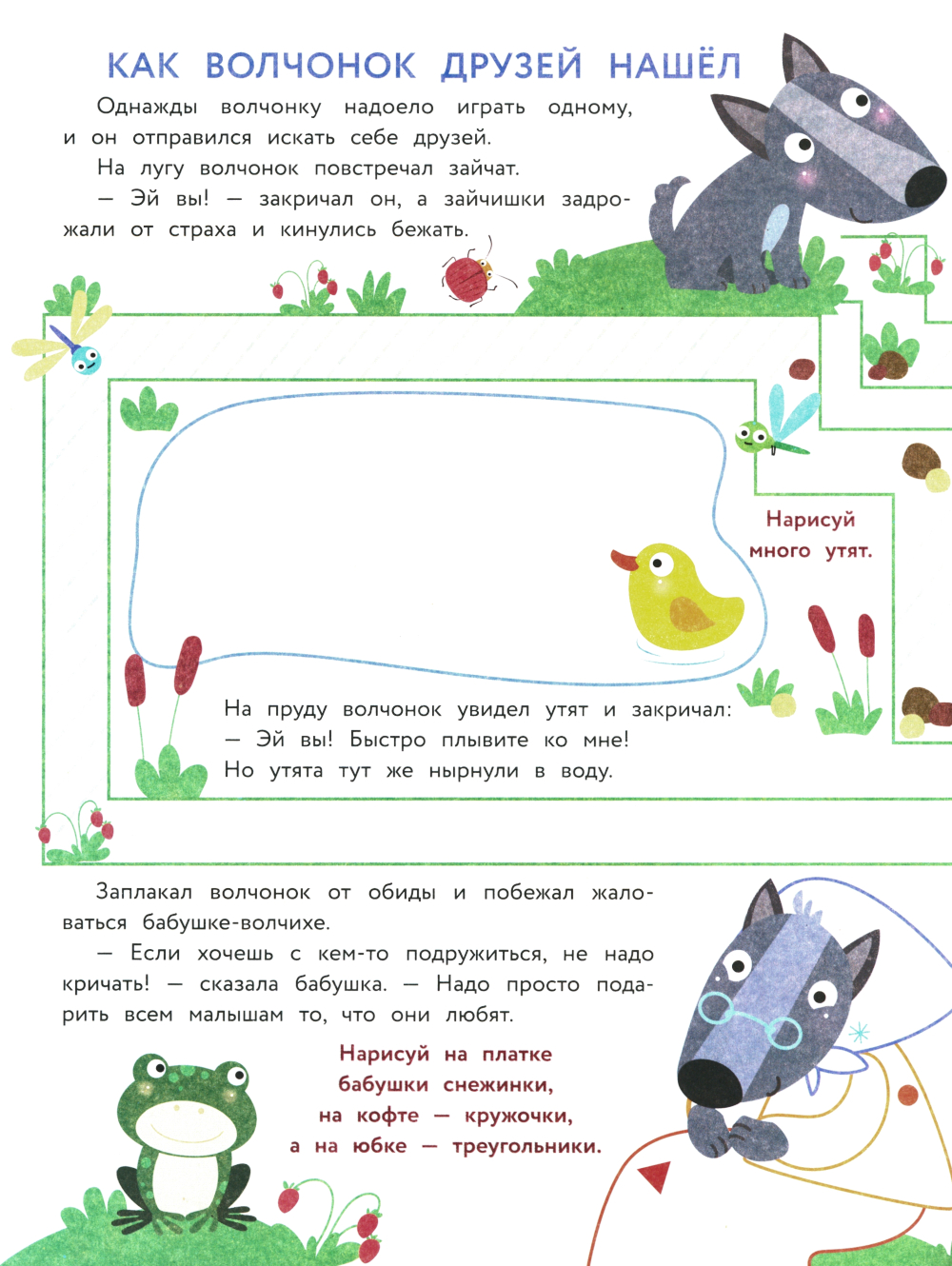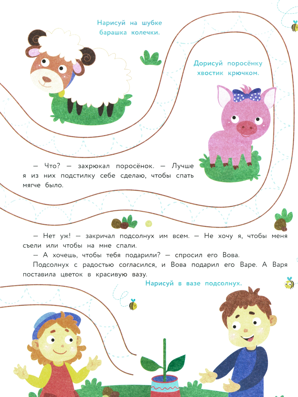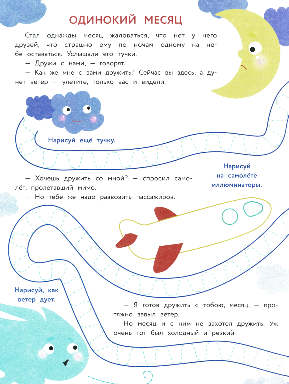 Эти прописи помогут вам организовать занятия с ребёнком так, чтобы он учился писать с удовольствием. Упражнения, предложенные в начале пособия, направлены в первую очередь на развитие мелких мышц руки, улучшение координации, раскрытие творческих способностей. Ребёнок будет выполнять задания, слушая увлекательные сказки и участвуя в приключениях вместе с их героями. Приступать к написанию букв следует после того, как ребёнок научится читать.