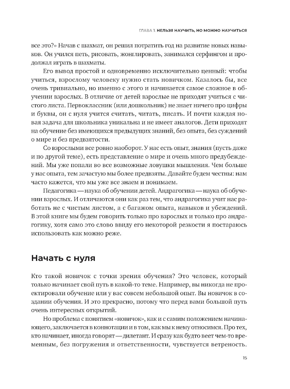 «Практика, практика и еще раз практика» - это не просто слова, это философия Елены Тихомировой, признанного эксперта в области обучения взрослых с более чем 20-летним опытом. В своей новой книге «Обучение со смыслом. 13 правил для тех, кто учит взрослых» она представляет пошаговое руководство для создания эффективных учебных программ, которые превратят любой тренинг или онлайн-курс из серии скучных лекций в динамичный процесс, способствующий глубокому освоению материала. Если вы сталкиваетесь с задачей разработки корпоративного тренинга или авторского онлайн-курса или хотите повысить эффективность учебных программ и стремитесь видеть результаты обучения на практике - эта книга для вас. Автор, Елена Тихомирова, подробно разъясняет, почему необходимо тщательно проектировать обучение, а не просто передавать знания. Автор раскрывает суть обучения для взрослых, показывая, что настоящее понимание приходит не через прямую передачу знаний, а через создание условий для самостоятельного освоения материала. Читая книгу, вы пройдете все шаги проектирования обучения: от появления идеи до оценки эффективности, а на каждом этапе будут пояснения, что нужно делать, почему это важно и как реализовать.| Издательство | Альпина ПРО |